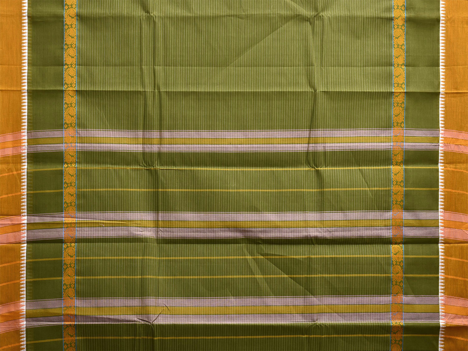 Green and Yellow Narayanpet Cotton Handloom Saree with Strips Design No Blouse np1189