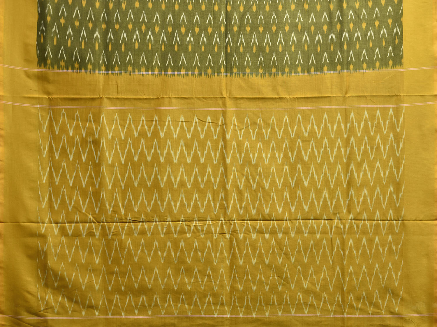 Green and Yellow Pochampally Ikat Cotton Handloom Saree with Zig-Zag Pallu Design No Blouse i0941