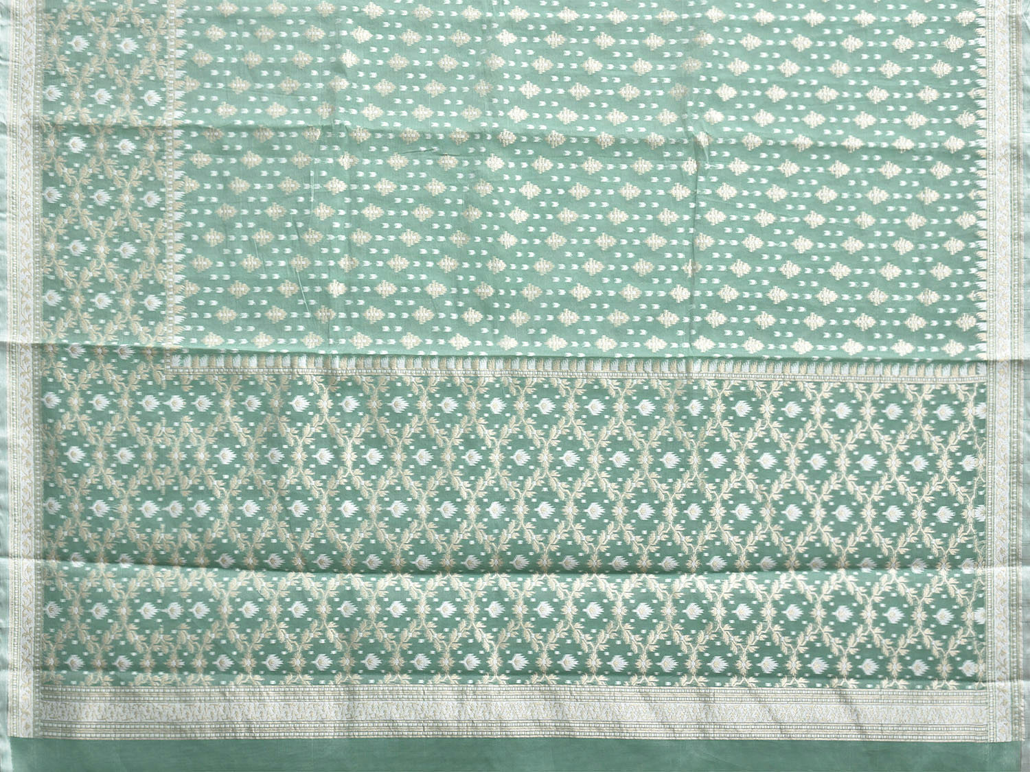 Green Dhakai Jamdani Cotton Viscose Saree with All Over and Border Design dj0225