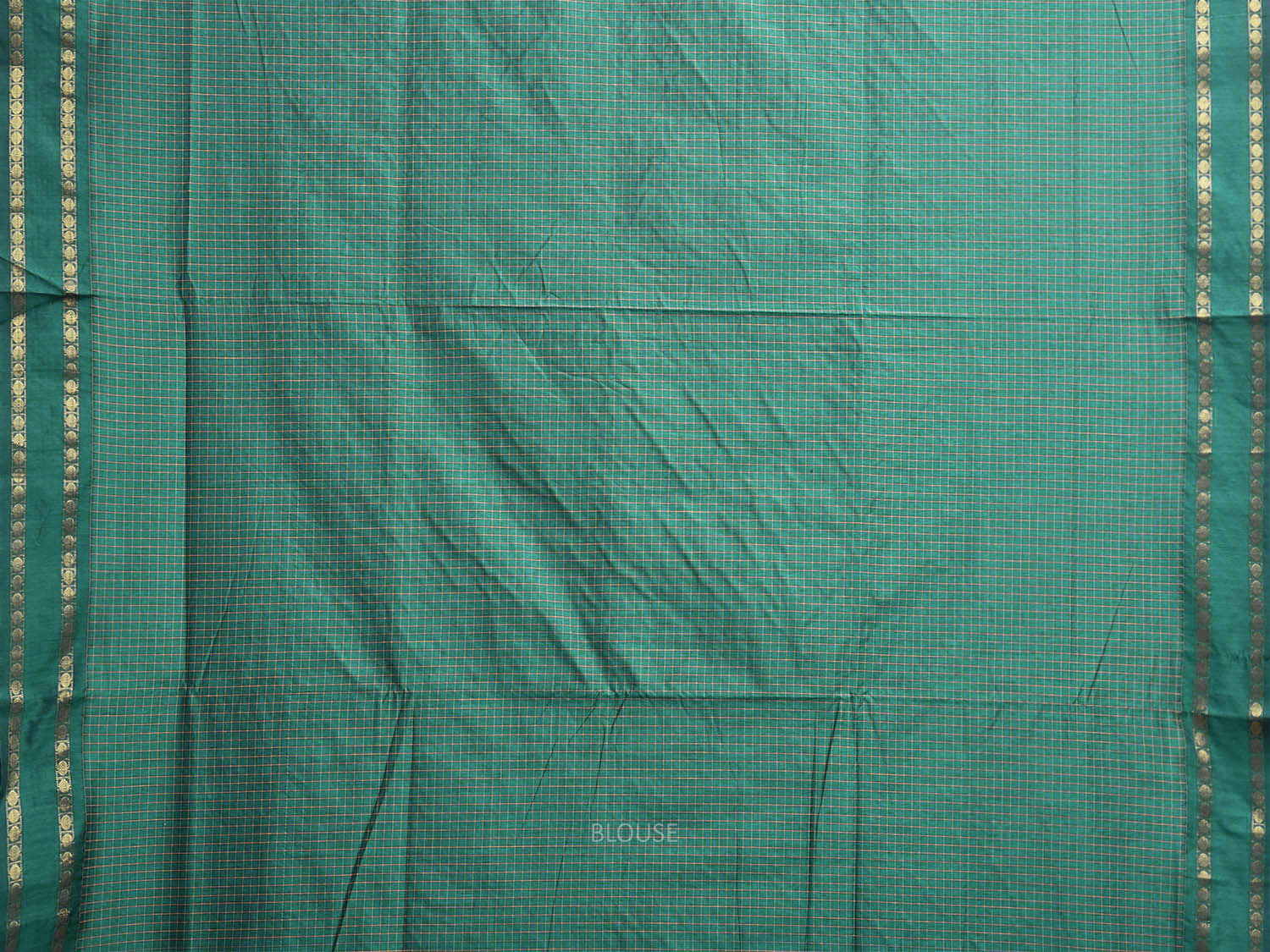 Green Gadwal Cotton Viscose Saree with Checks and Doby Border Design g0614