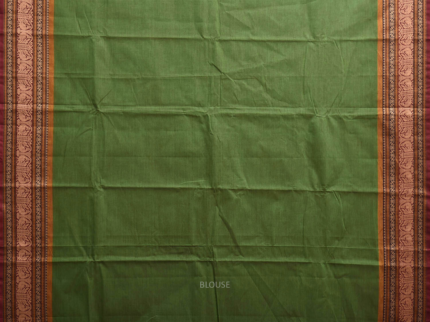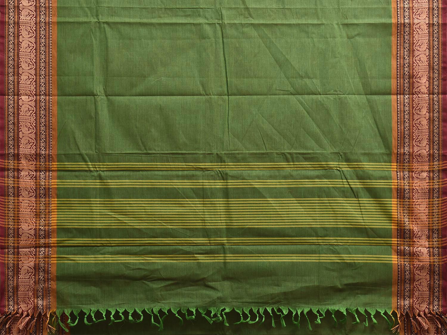 Green Kanchipuram Cotton Plain Saree with Strips Pallu and Border Design. Traditional Simple South Indian Attire Saree for any Casual Occasions. As it’s a cotton saree we advice gentle handwash separately for fabric care.