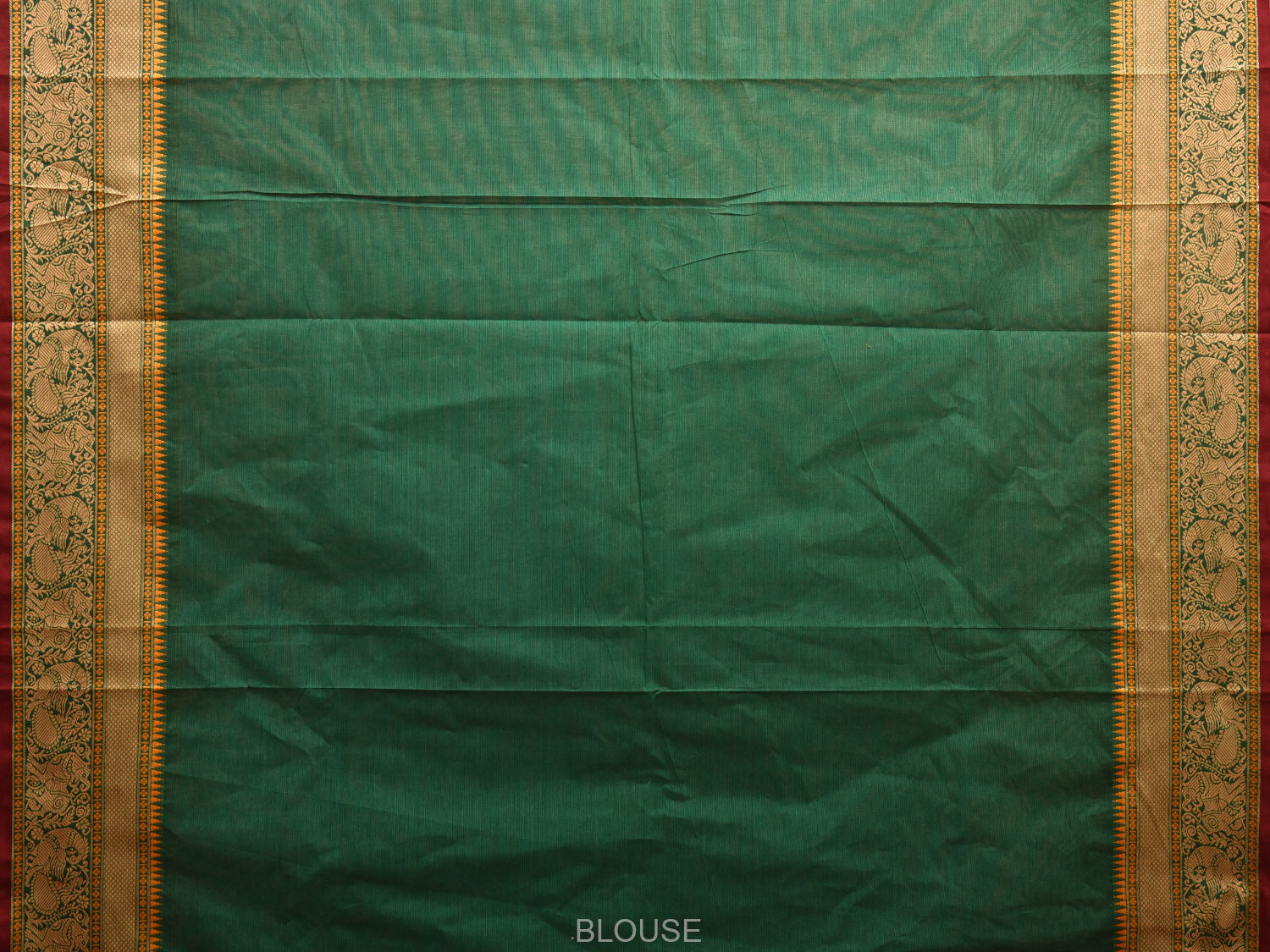 Green Kanchipuram Cotton Plain Saree with Strips Pallu and Peacock Border Design k0704
