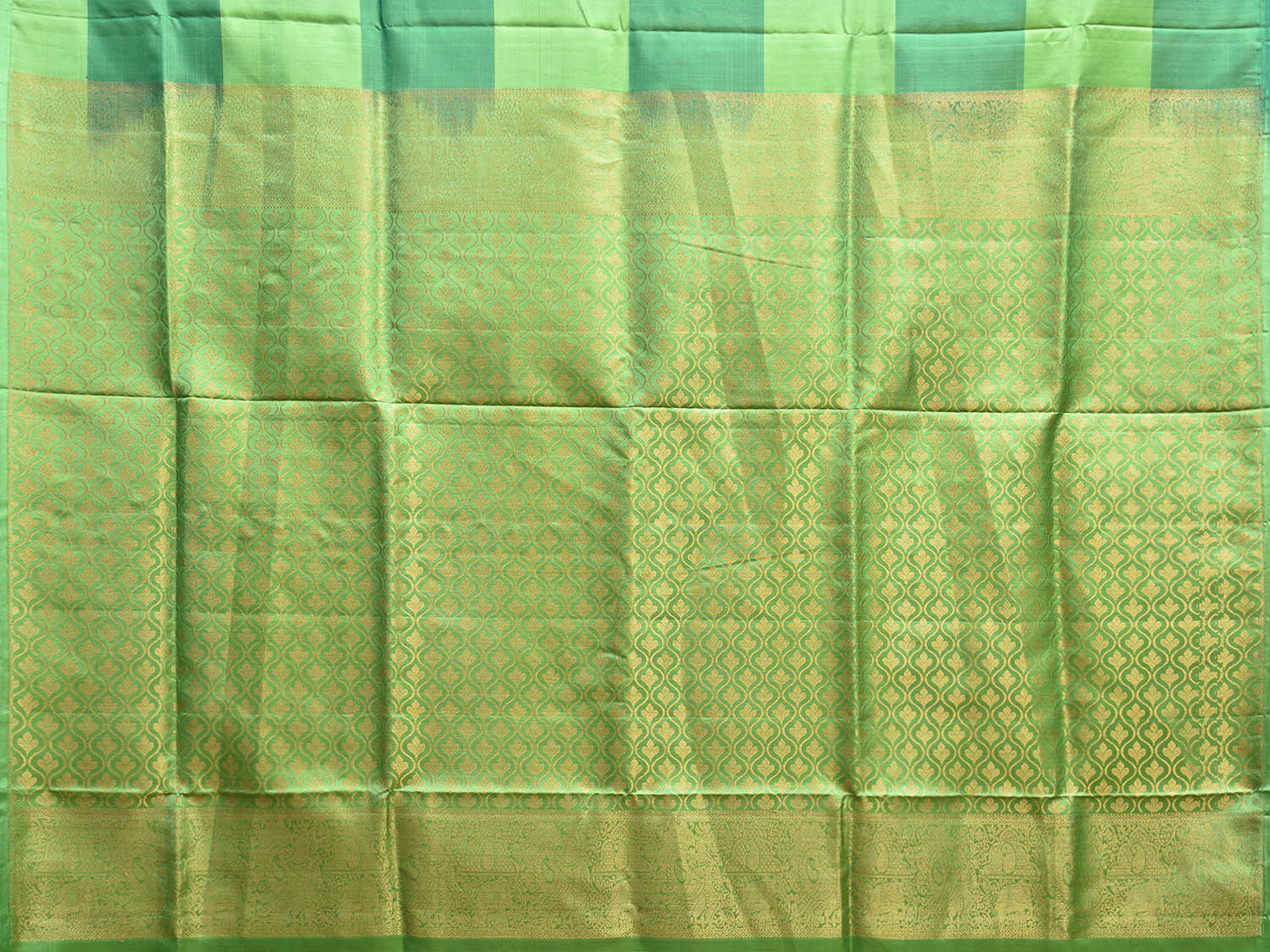 Green Kanchipuram Silk Handloom Saree with Big Checks and Peacock Buta Design k0800