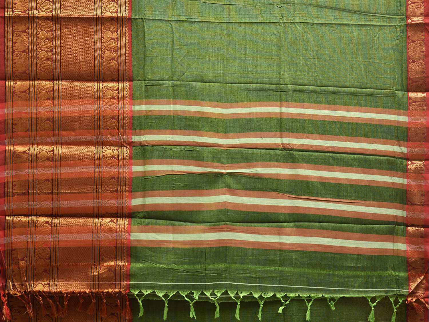 Green Madurai Cotton Plain Saree with Kanchipuram Border Design No Blouse k1021