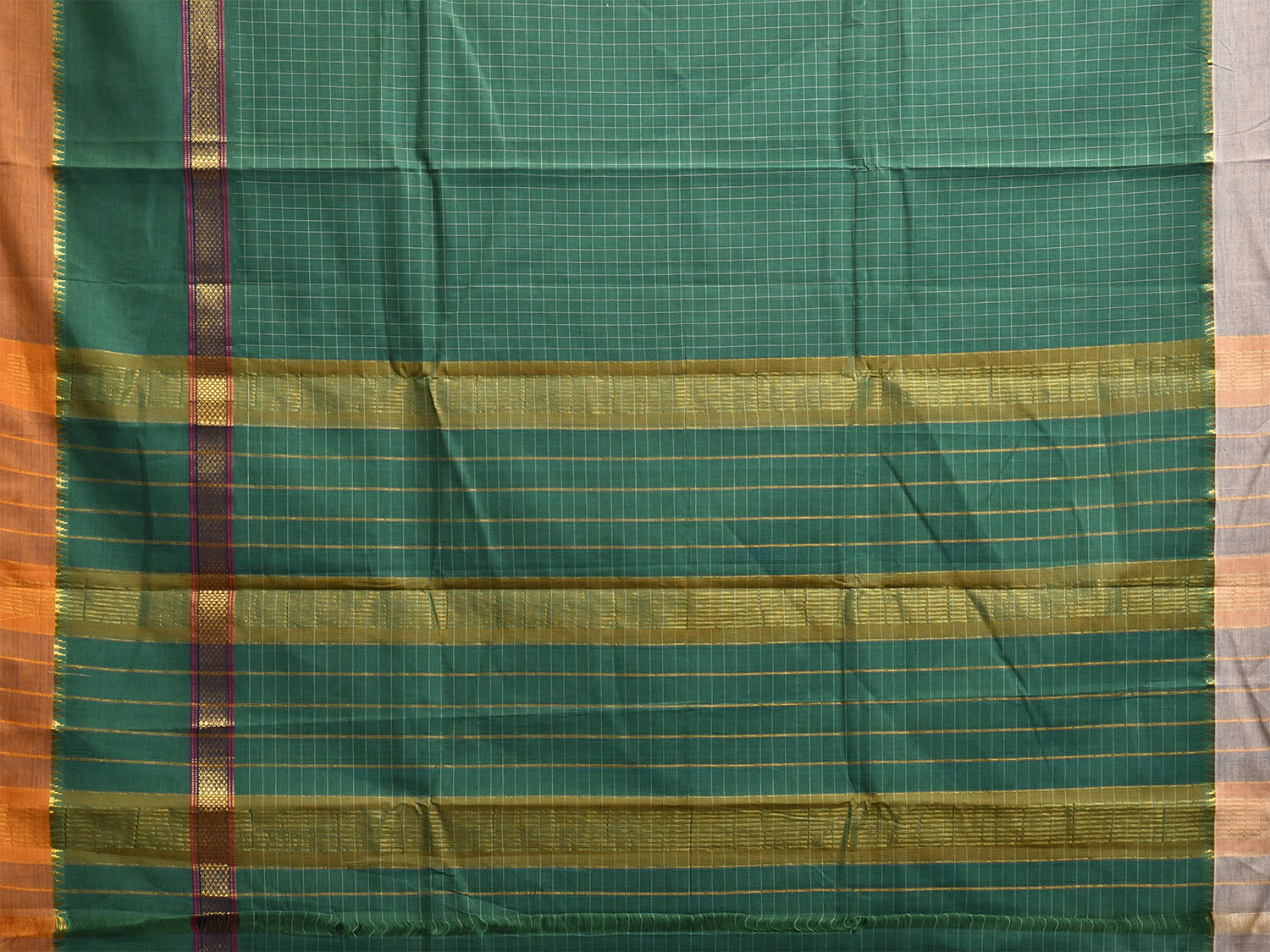 Green Narayanpet Cotton Handloom Saree with Checks and Big Border Design No Blouse np1297