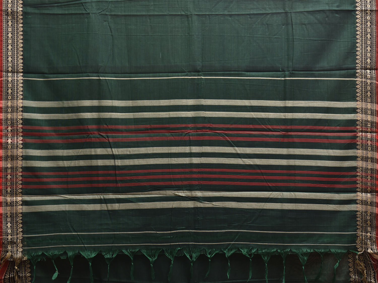Green Narayanpet Cotton Plain Saree with Border and Strips Pallu Design No Blouse