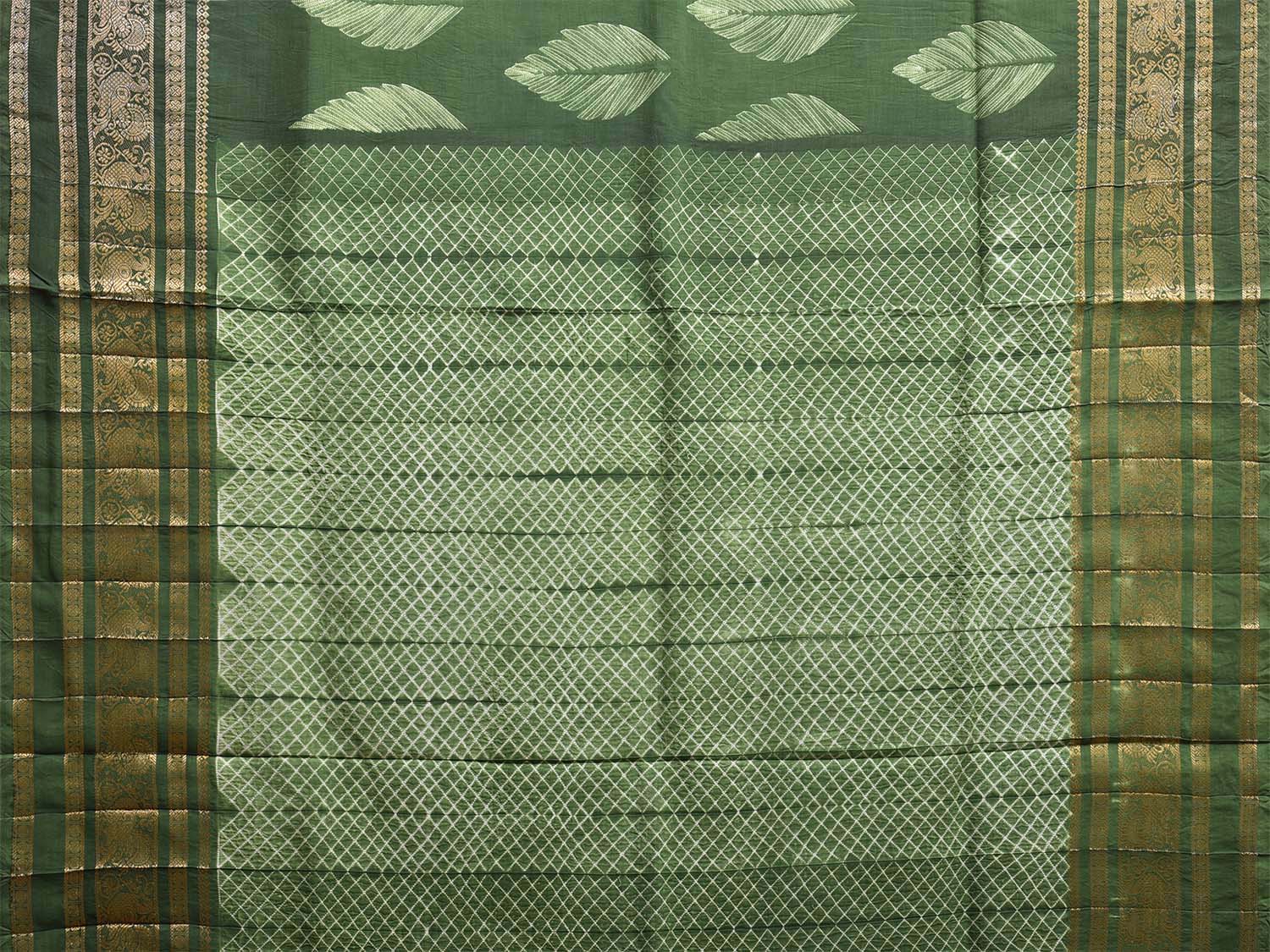 Green Shibori Sico Saree with Leaves Body Grill Pallu and Border Design o0622