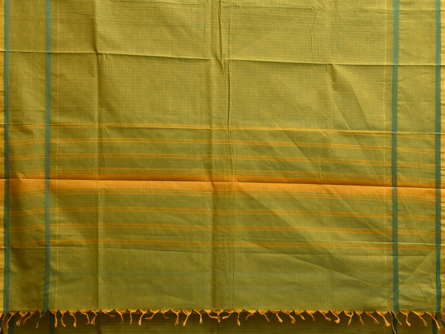 Green Venkatagiri Cotton Saree with Checks and Strips Pallu Design v0195