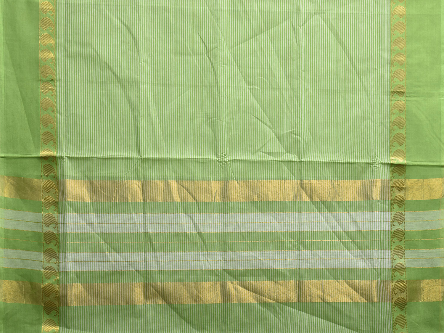 Green Venkatagiri Cotton Saree with Strips Body and Border Design No Blouse v0172