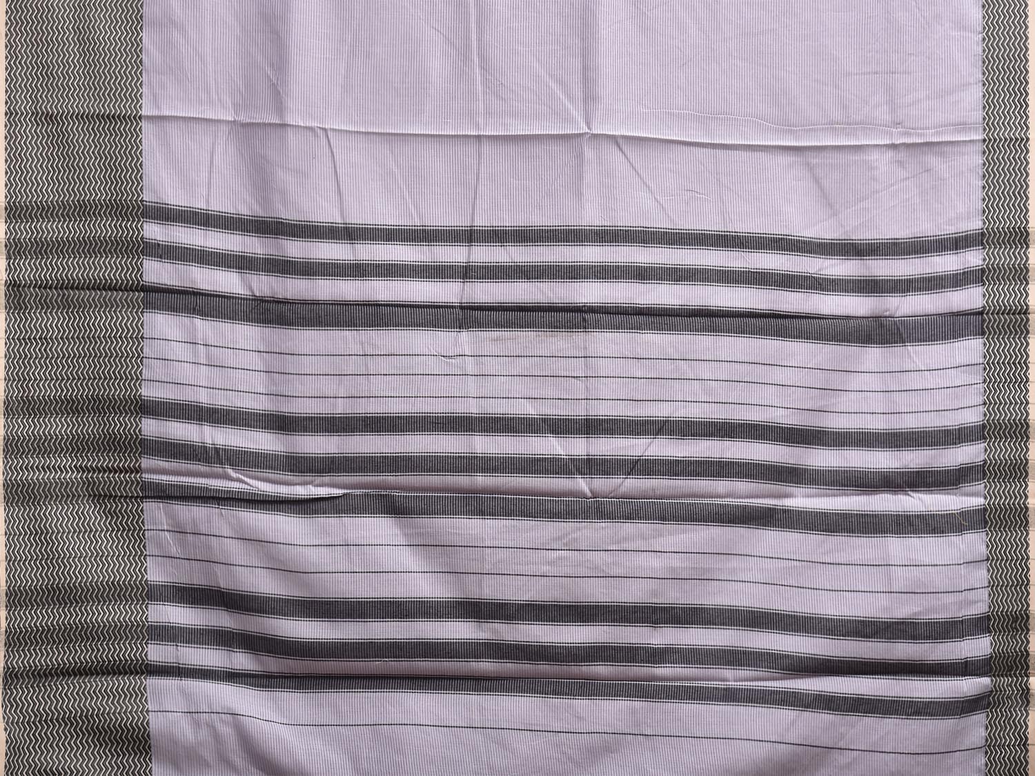 Grey and Black Bamboo Cotton Saree with Strips Design No Blouse. This is a blend of bamboo and cotton fibers, they have characteristics of both bamboo and cotton combined into one fabric. We Advise Gentle Handwash for Fabric Care. This Saree has no Blouse.