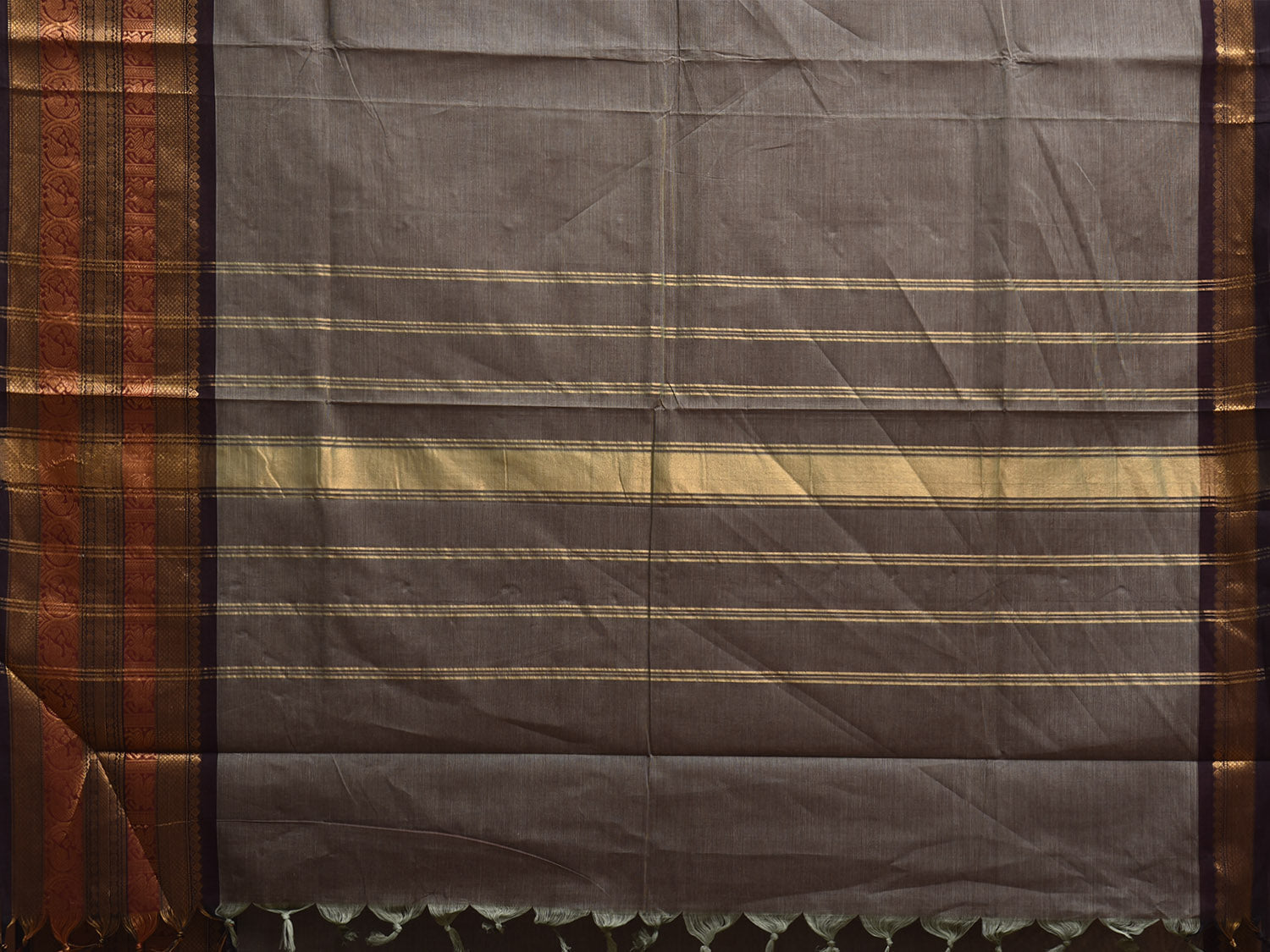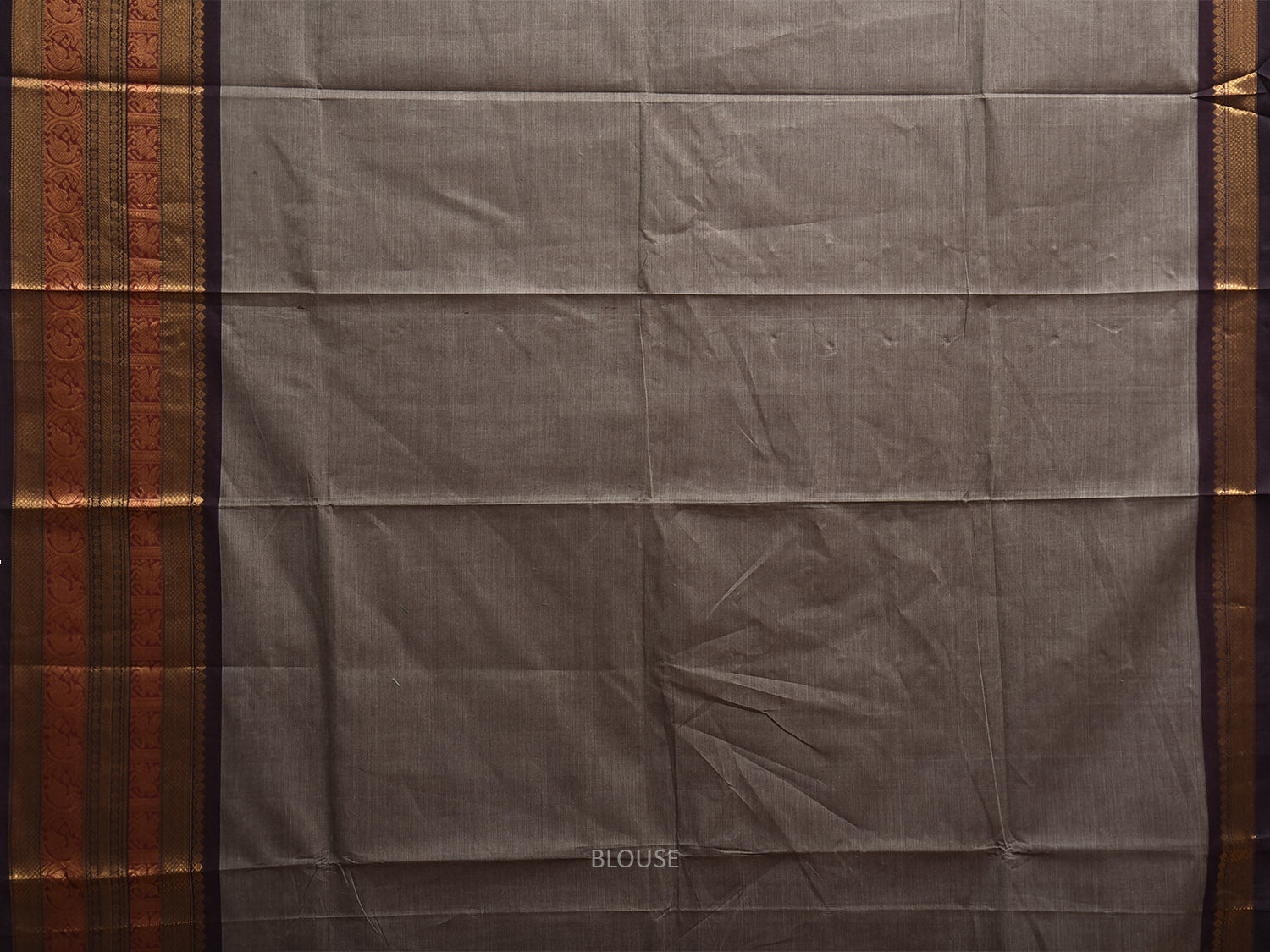 Grey and Black Kanchipuram Cotton Plain Saree with One Side Big Border Design k0898
