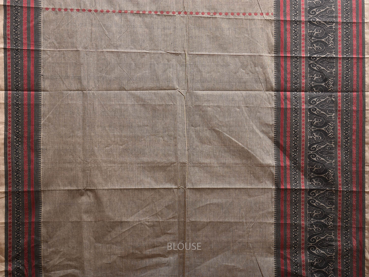 Grey and Black Kanchipuram Cotton Saree with Pallu and Big Border Design. Traditional Simple South Indian Attire Saree for any Casual Occasions. As it’s a cotton saree we advice gentle handwash separately for fabric care.