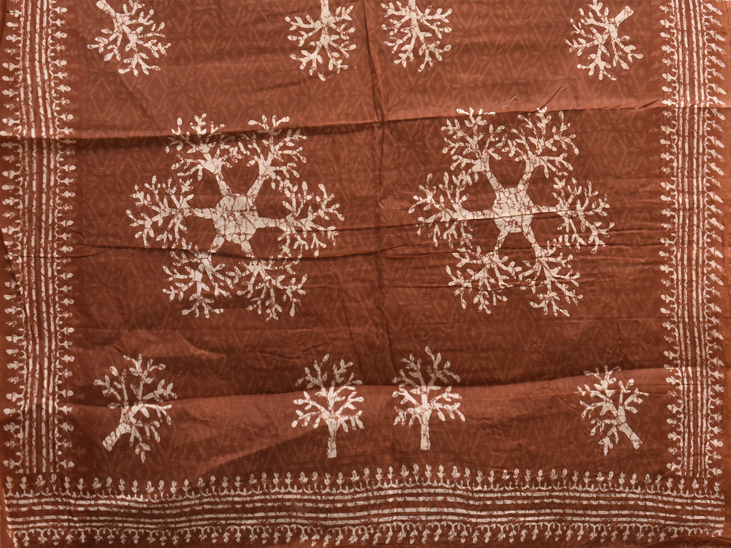 Grey and Brown Batik Print Cotton Saree with All Over Body and Pallu Design o0703