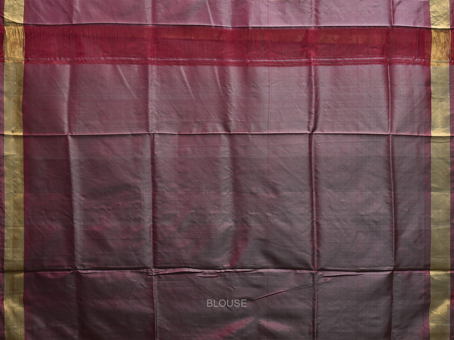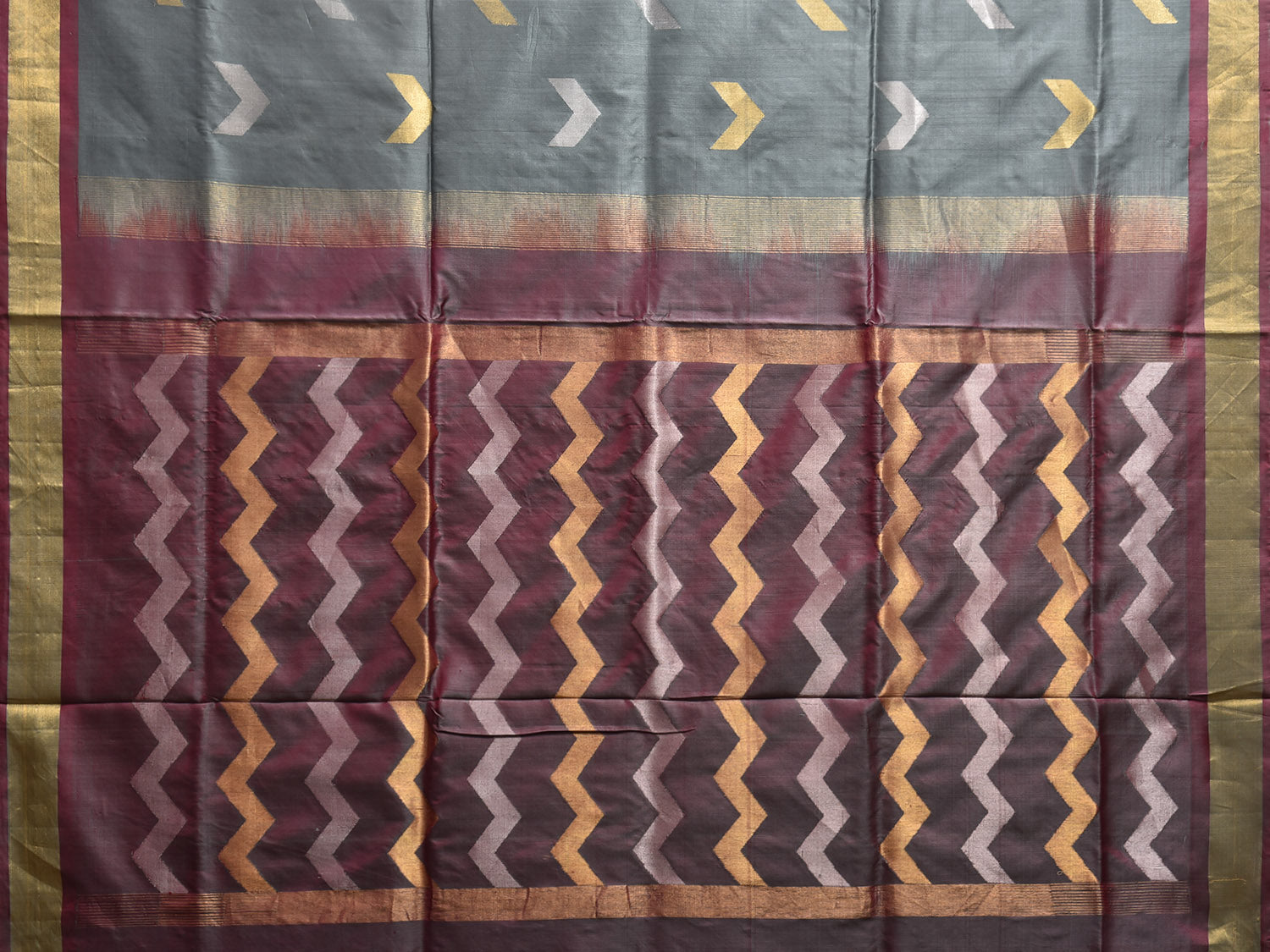 Grey and Burgundy Uppada Silk Handloom Saree with Body Buta and Zig-Zag Pallu Design u2379