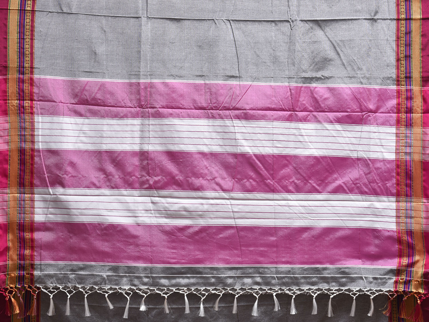 Grey and Light Pink ilkal Cotton Plain Saree with Strips Pallu Design No Blouse. For fabric care we advise gentle handwash separately.