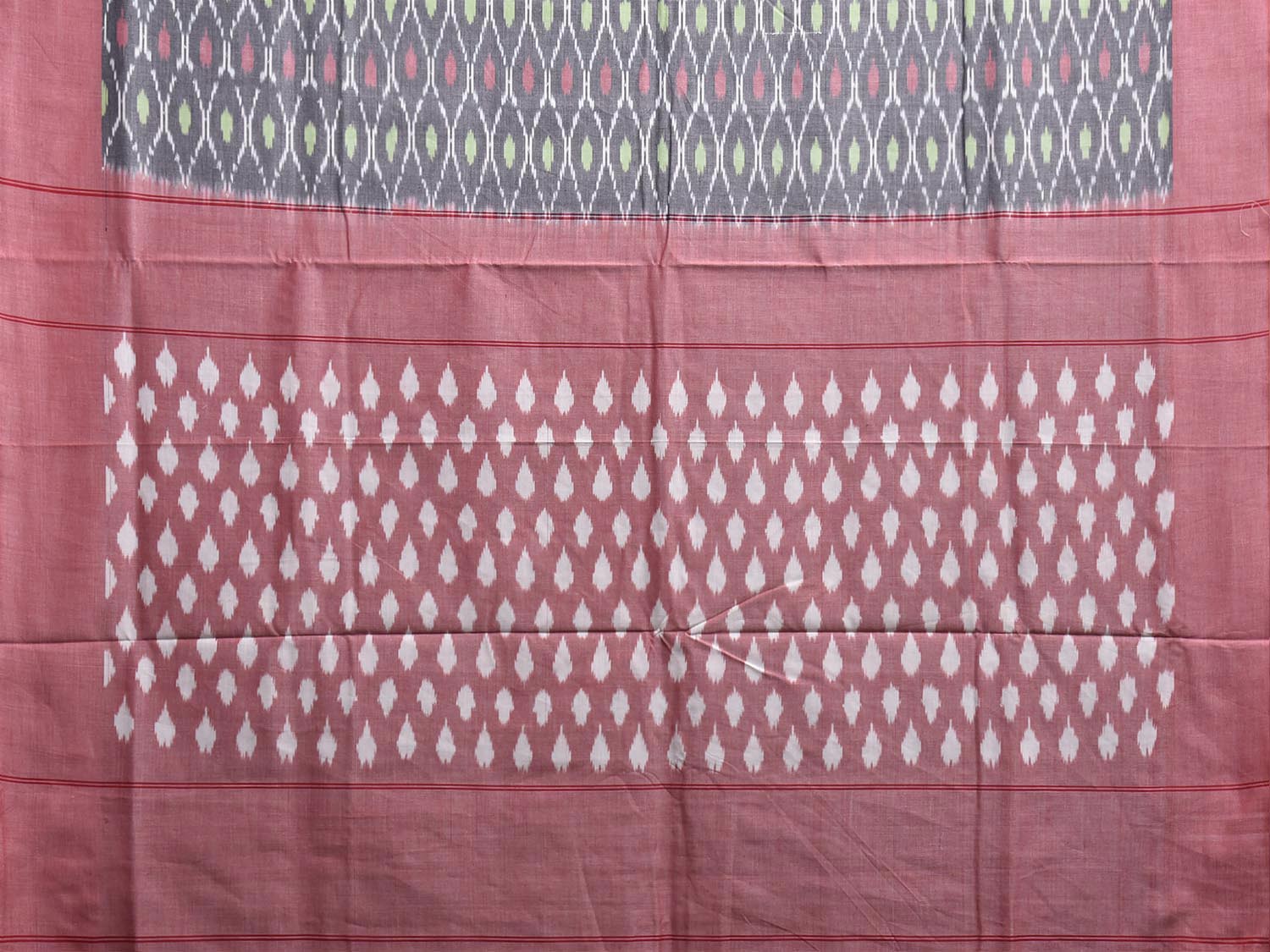 Grey and Light Pink Pochampally Ikat Cotton Handloom Saree with All Over Grill Design No Blouse i1002