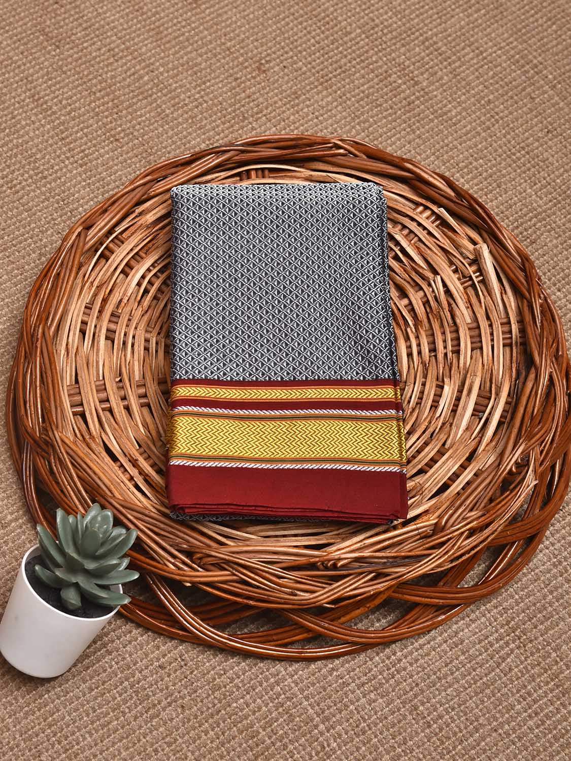 Grey and Maroon Jacquard Viscose Blouse with Contrast Border Design Length 1mt Width 31 Inches. Beautiful Pattern Blouse Fabric and Easy to Match to Any Suitable Saree. We Advise Gentle Handwash for Fabric Care.