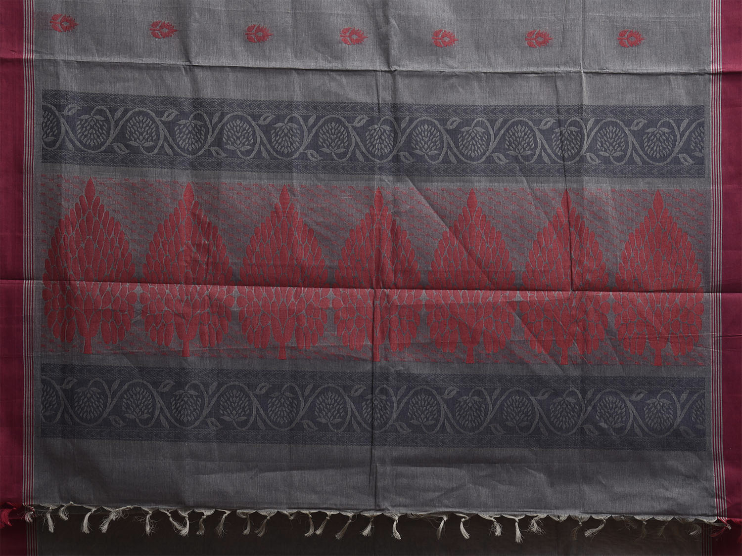 Grey and Maroon Venkatagiri Cotton Saree with Buta and Pallu Design v0277