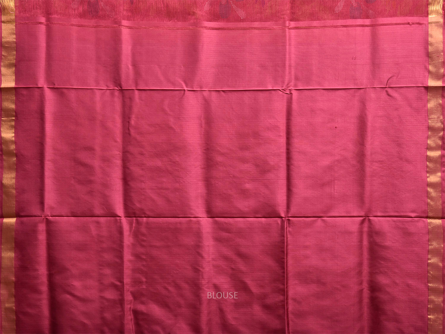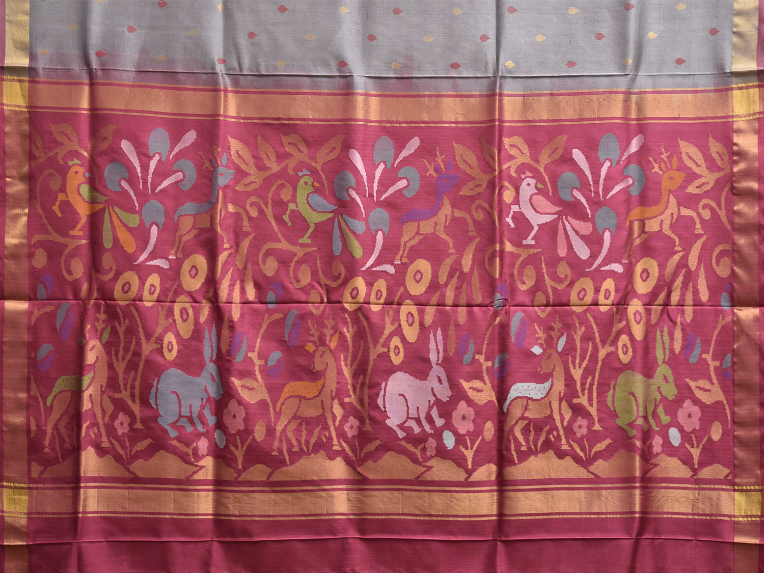 Grey and Pink Uppada Silk Handloom Saree with Floral and Animals Pallu Design u2474