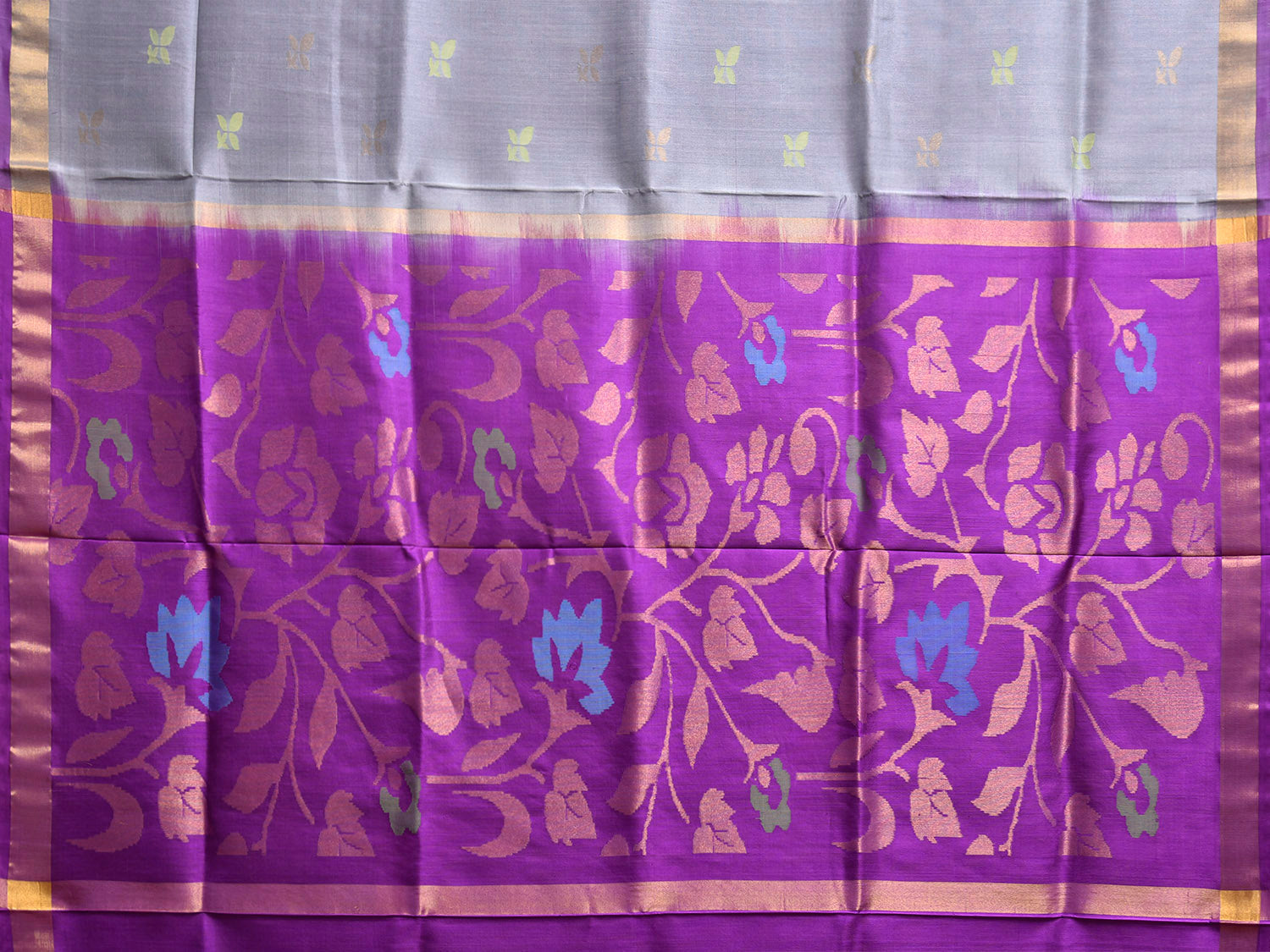 Grey and Purple Uppada Silk Handloom Saree with Floral Pallu Design u2410