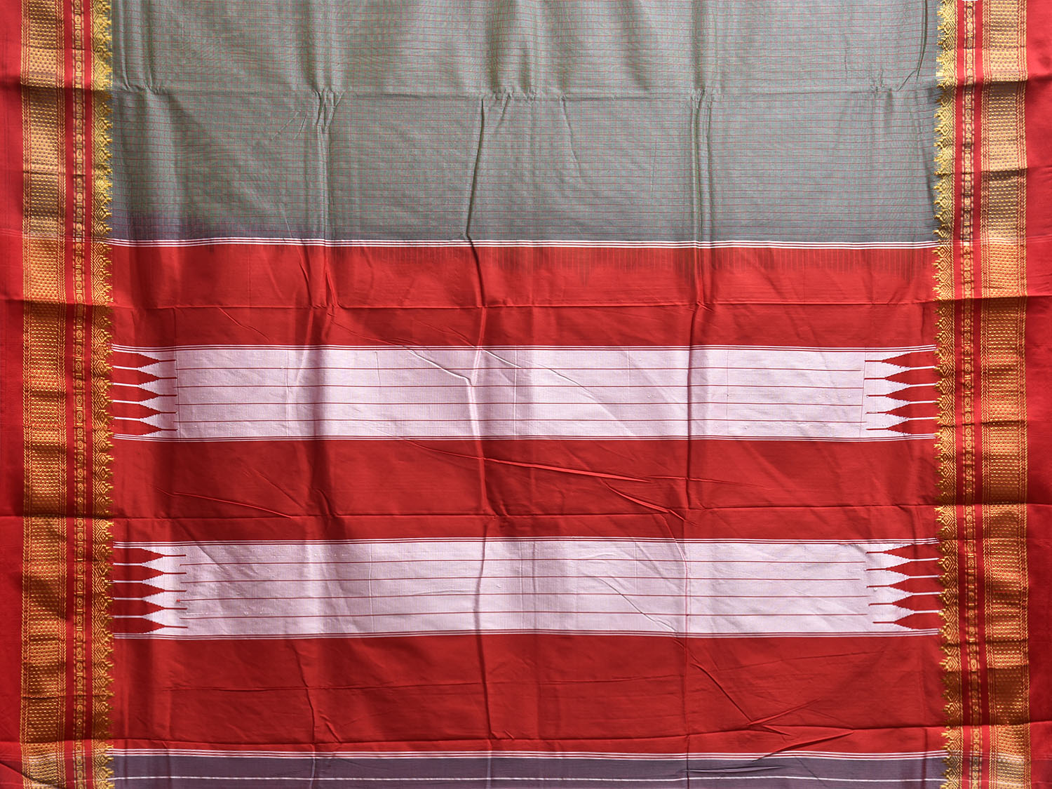 Grey and Red ilkal Viscose Silk Saree with Checks and Contrast Teni Tope Kammi Pallu Design il0022