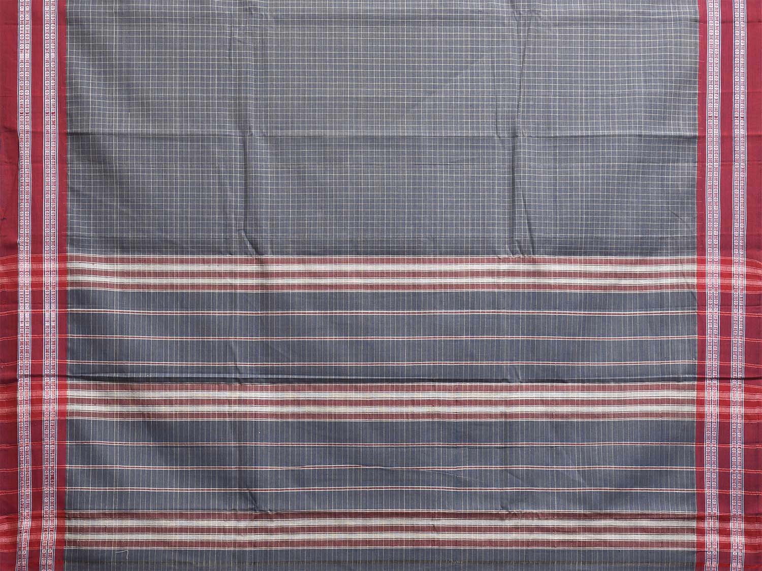 Grey and Red Narayanpet Cotton Handloom Saree with Checks Design No Blouse np1377