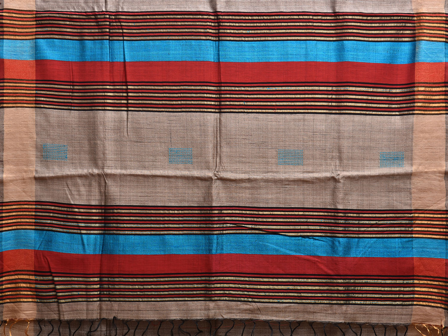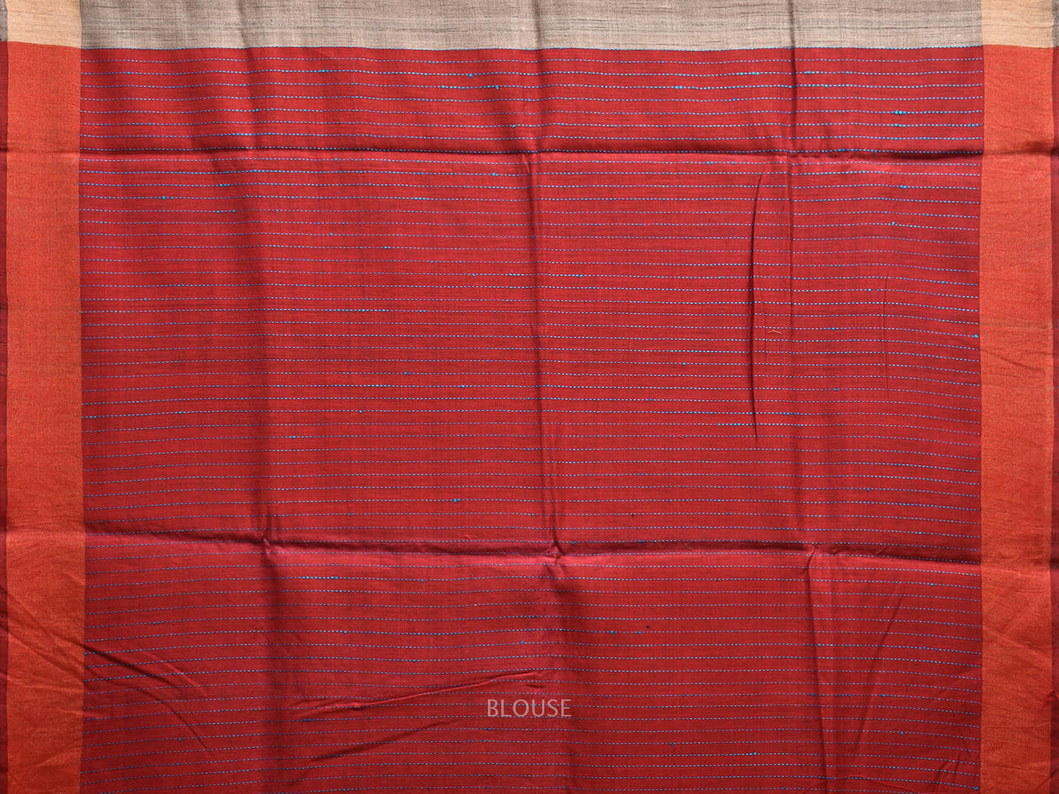 Grey and Red Tussar Saree with Strips Pallu Design o0633
