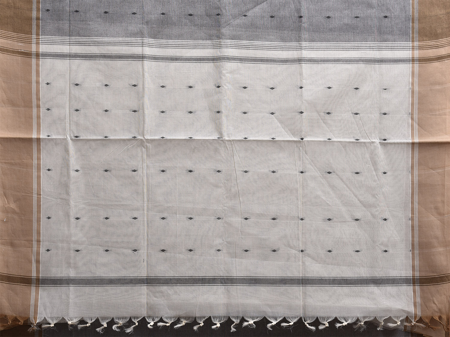 Grey and White Venkatagiri Cotton Saree with Small Buta and Pallu Design v0190