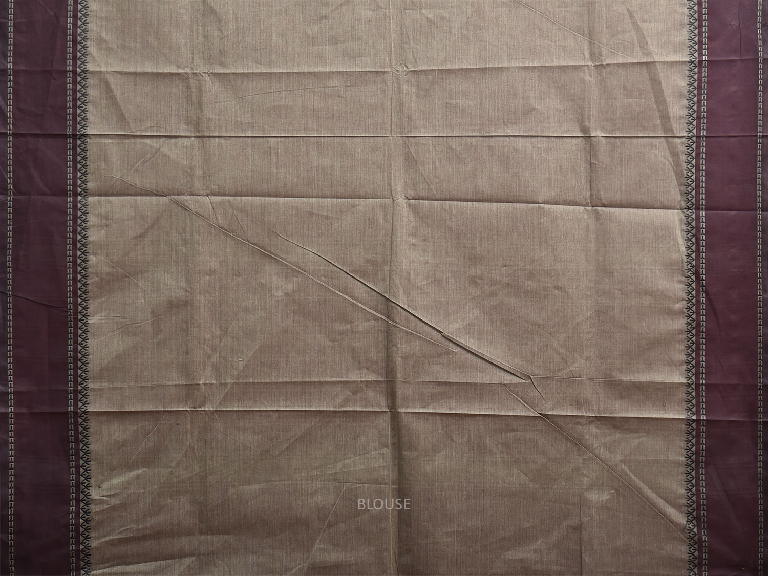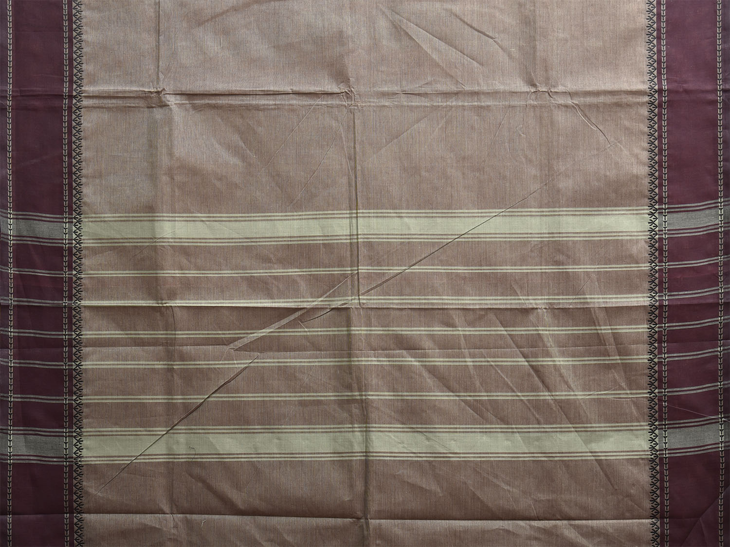 Grey and Wine Kanchipuram Cotton Plain Saree with Strips Pallu Design k0963