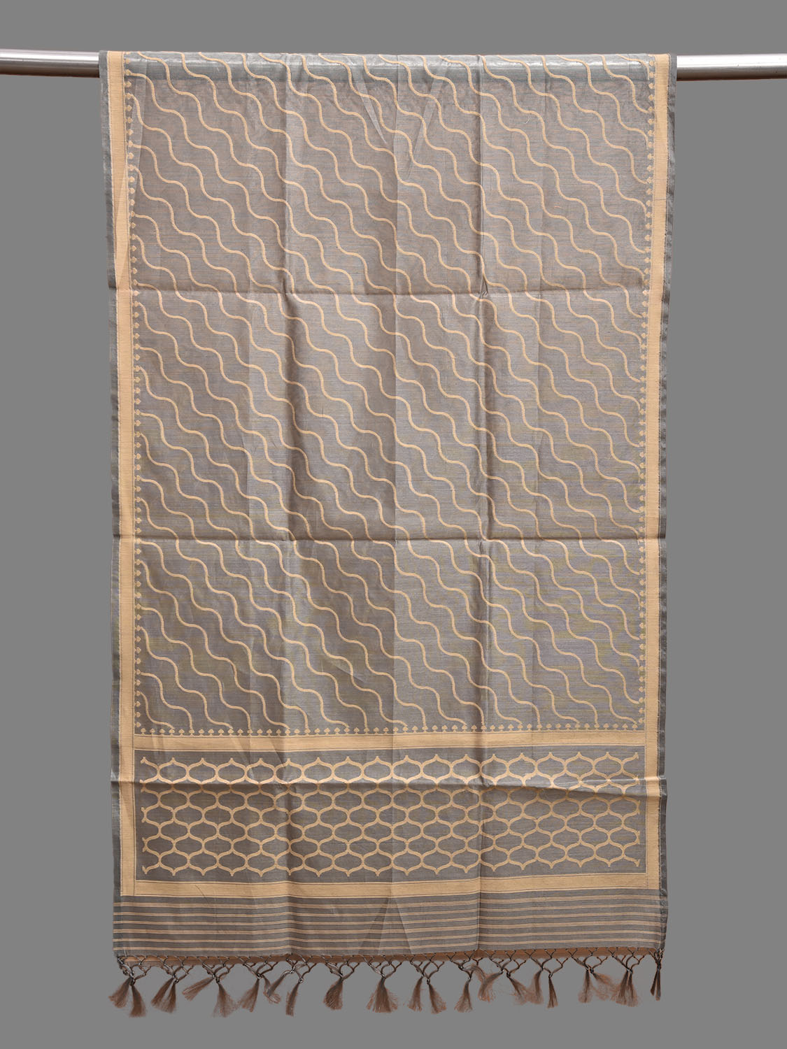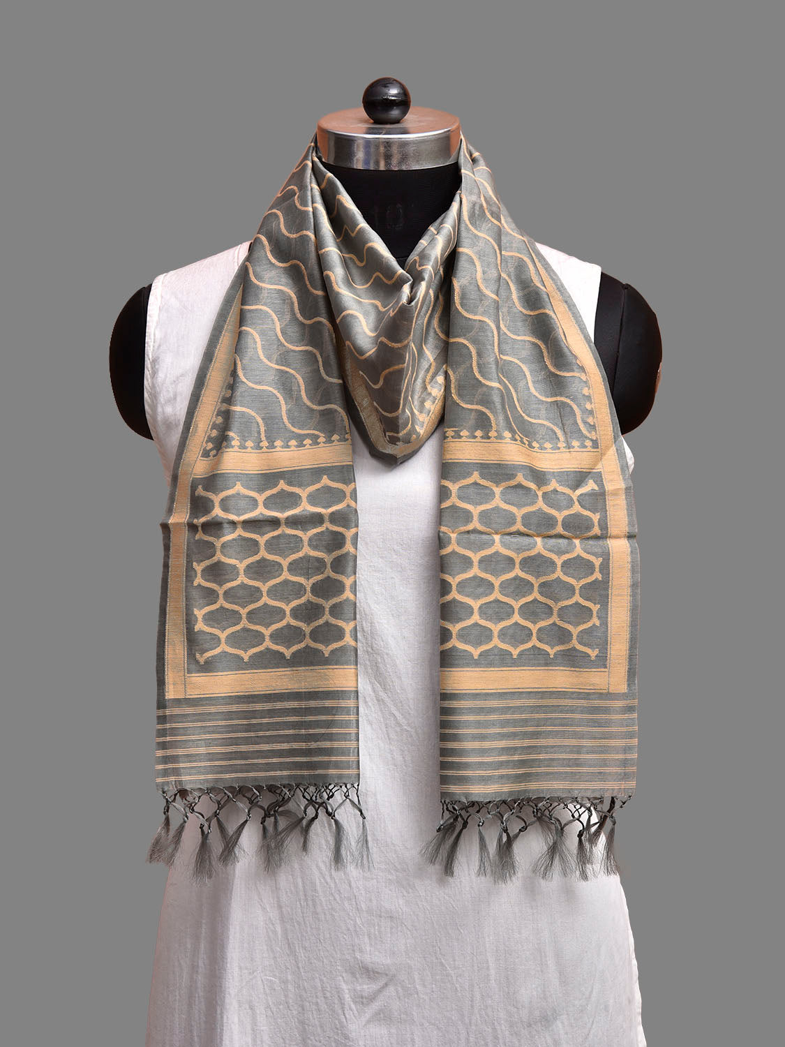 Grey Banaras Cotton Silk Stole with Diagonal Design ds3907