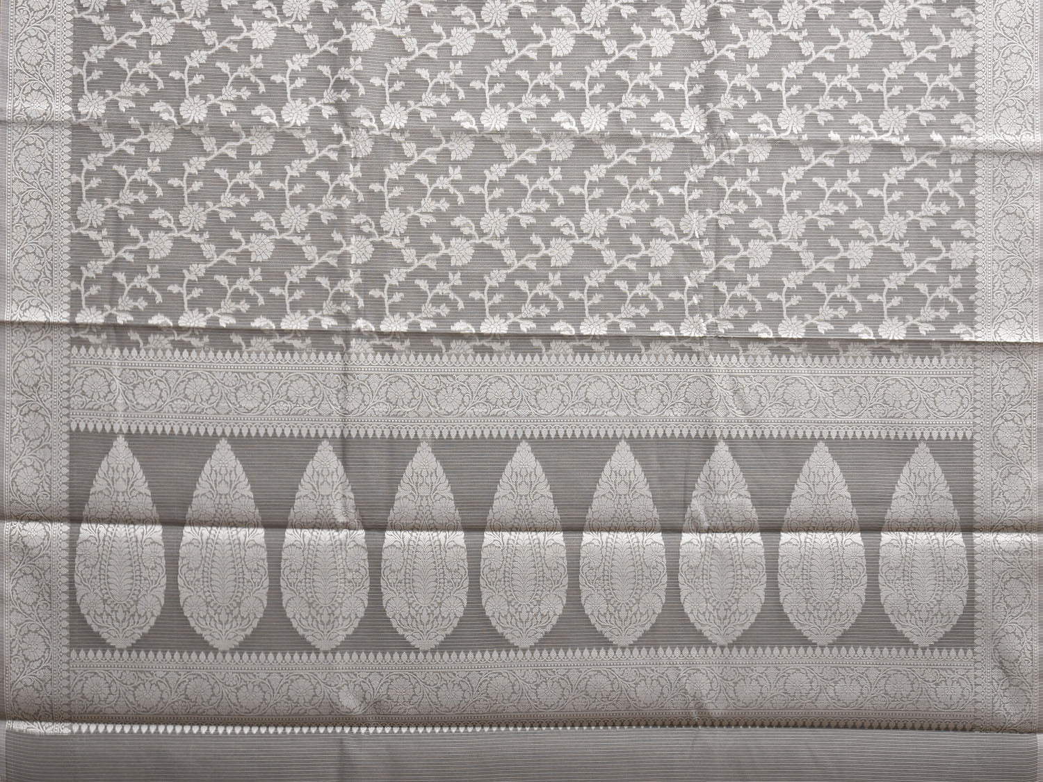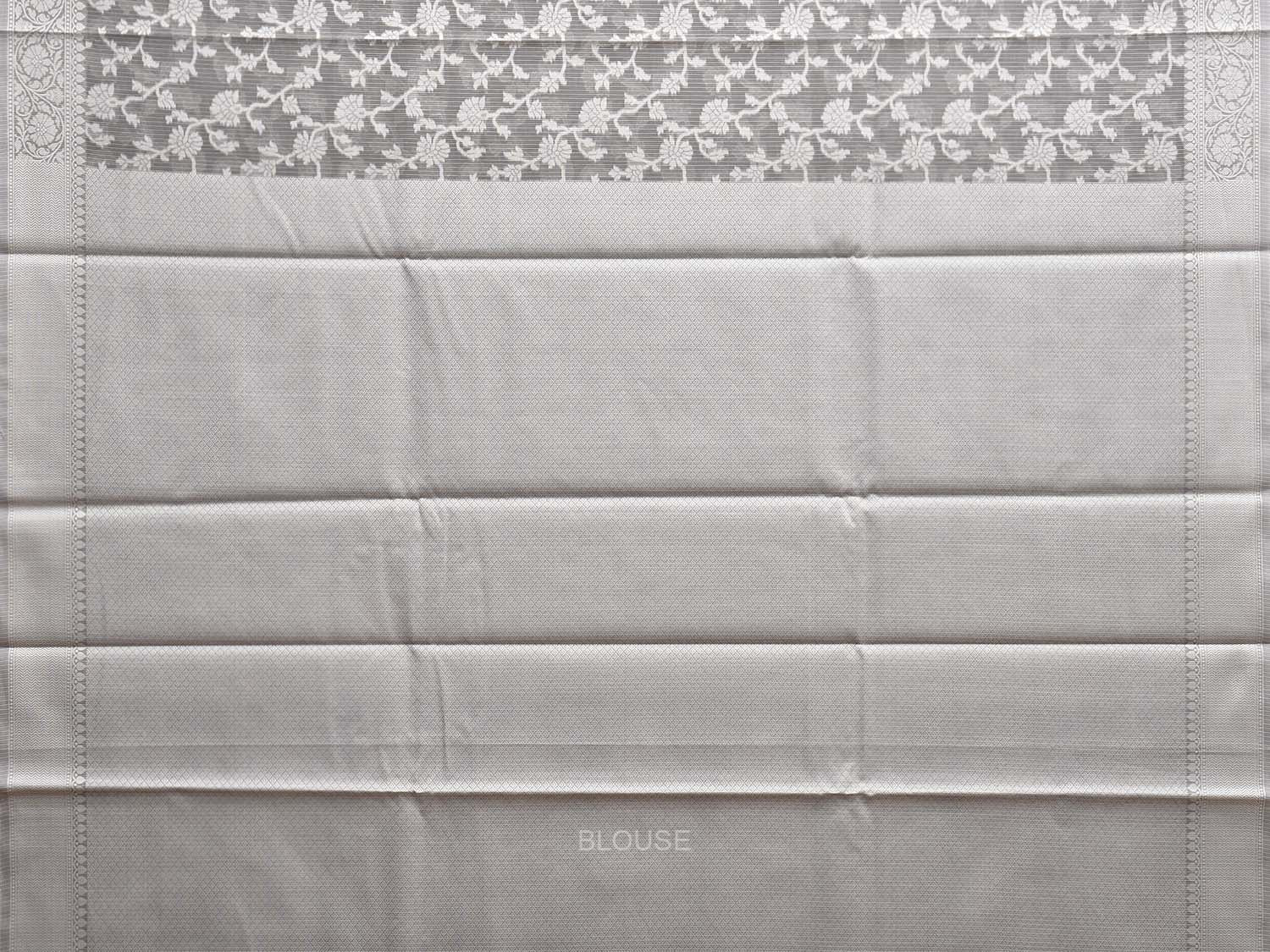 Grey Dhakai Jamdani Cotton Viscose Saree with Floral Body and Pallu Design dj0143