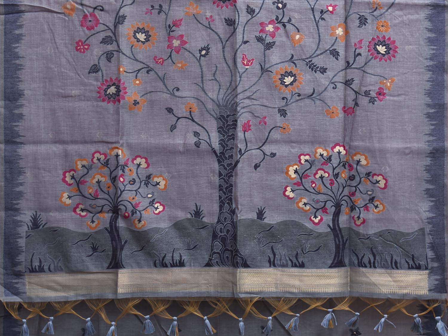 Grey Dhakai Jamdani Cotton Viscose Saree with Tree Pallu Design dj0255