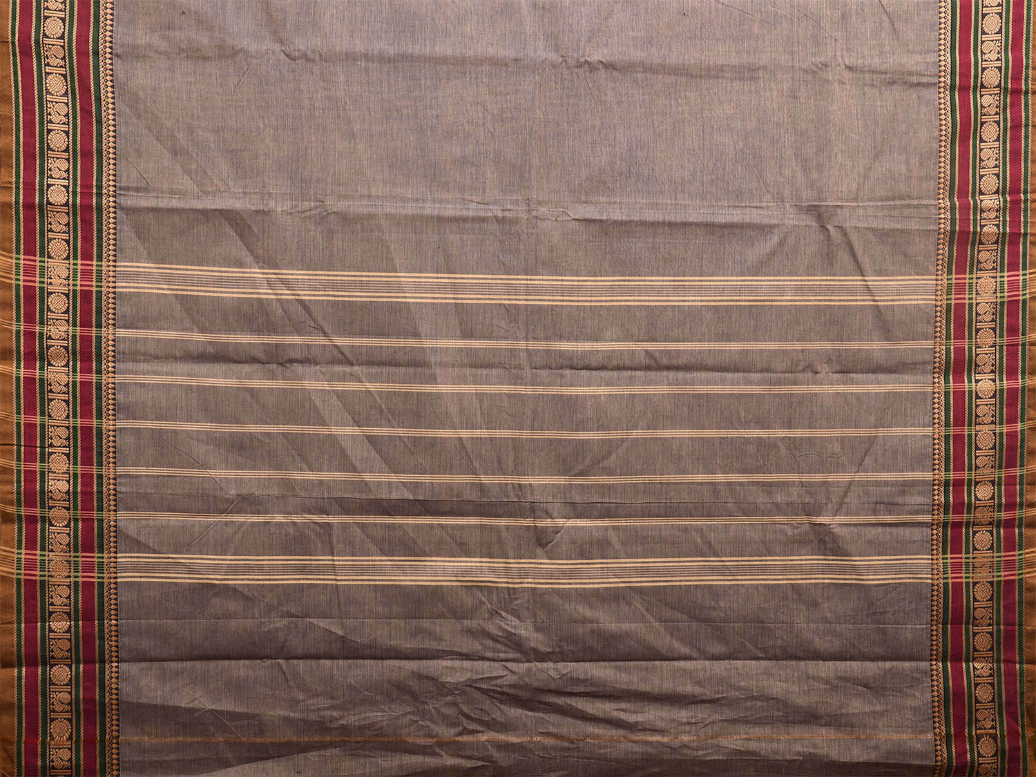 Grey Kanchipuram 80s Cotton Plain Saree with Peacock-Rudraksh Border Design No Blouse k0642