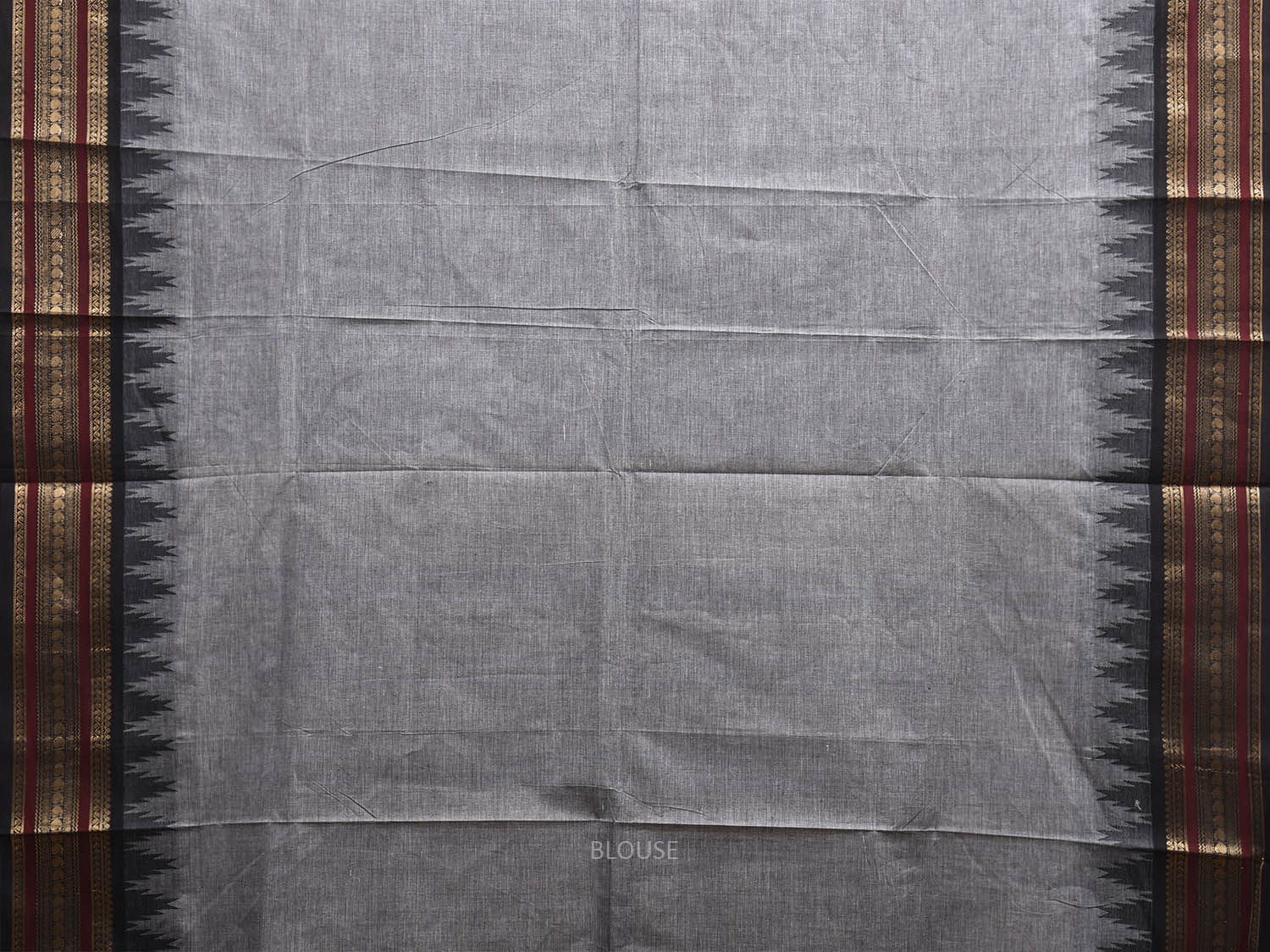 Grey Kanchipuram Cotton Saree with Buta and Temple Border Design k0951