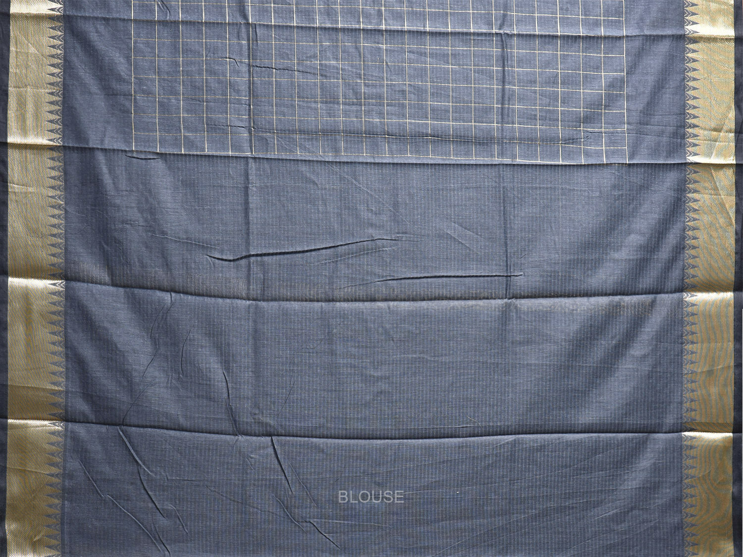 Grey Mangalgiri Cotton Handloom Saree with Checks and Temple Border Design mn0113