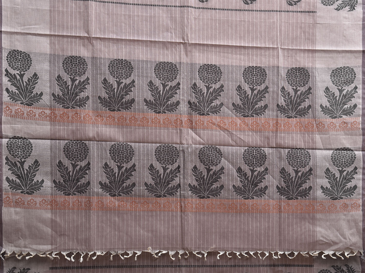 Grey Venkatagiri Cotton Saree with Floral Border and Pallu Design v0198