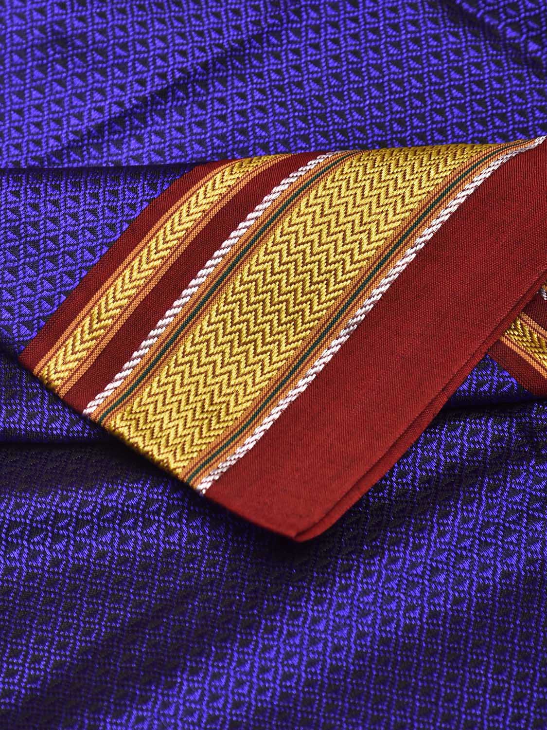 Indigo and Maroon Jacquard Viscose Blouse with Contrast Border Design Length 1mt Width 31 Inches BL0176