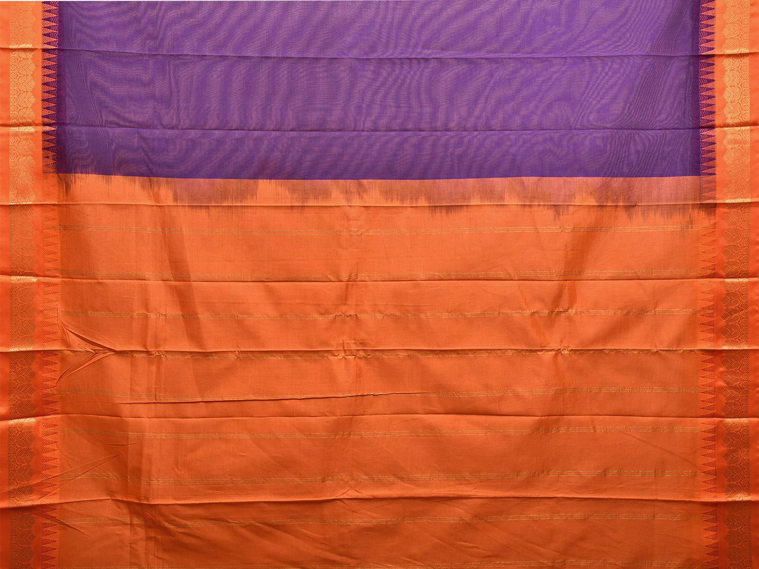 Indigo and Orange Gadwal Cotton Plain Saree with Strips Pallu and Border Design No Blouse g0405