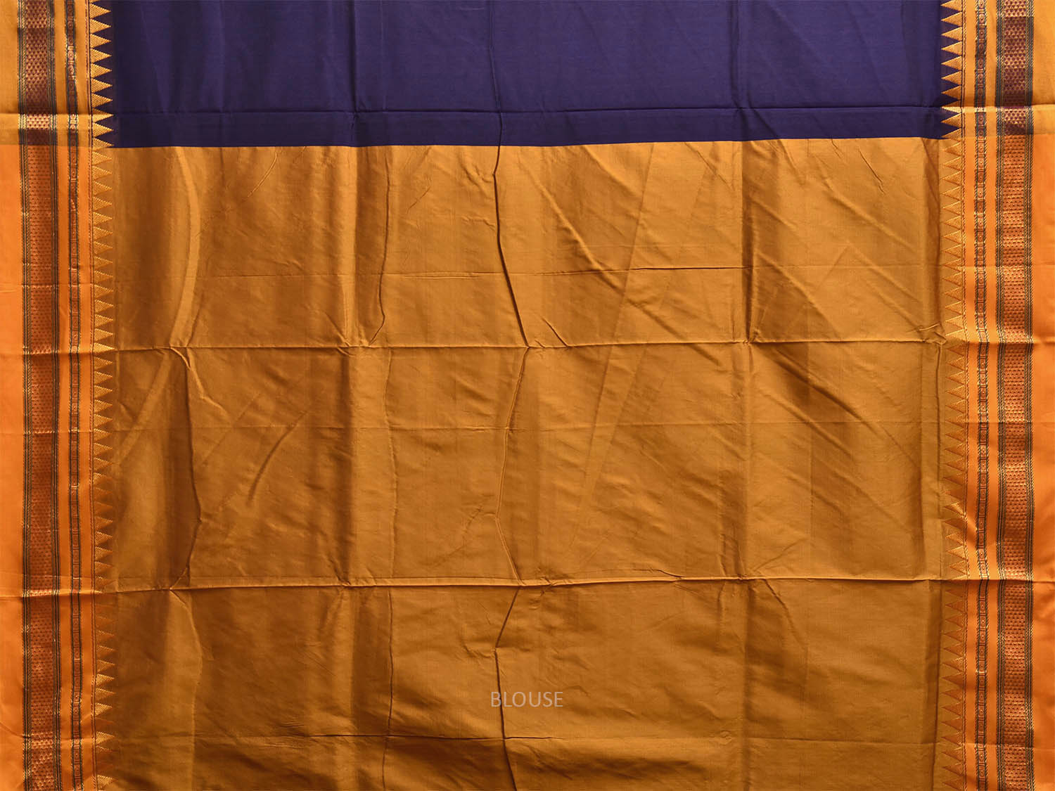 Indigo and Yellow ilkal Cotton Viscose Plain Saree with Strips Pallu Design il0080