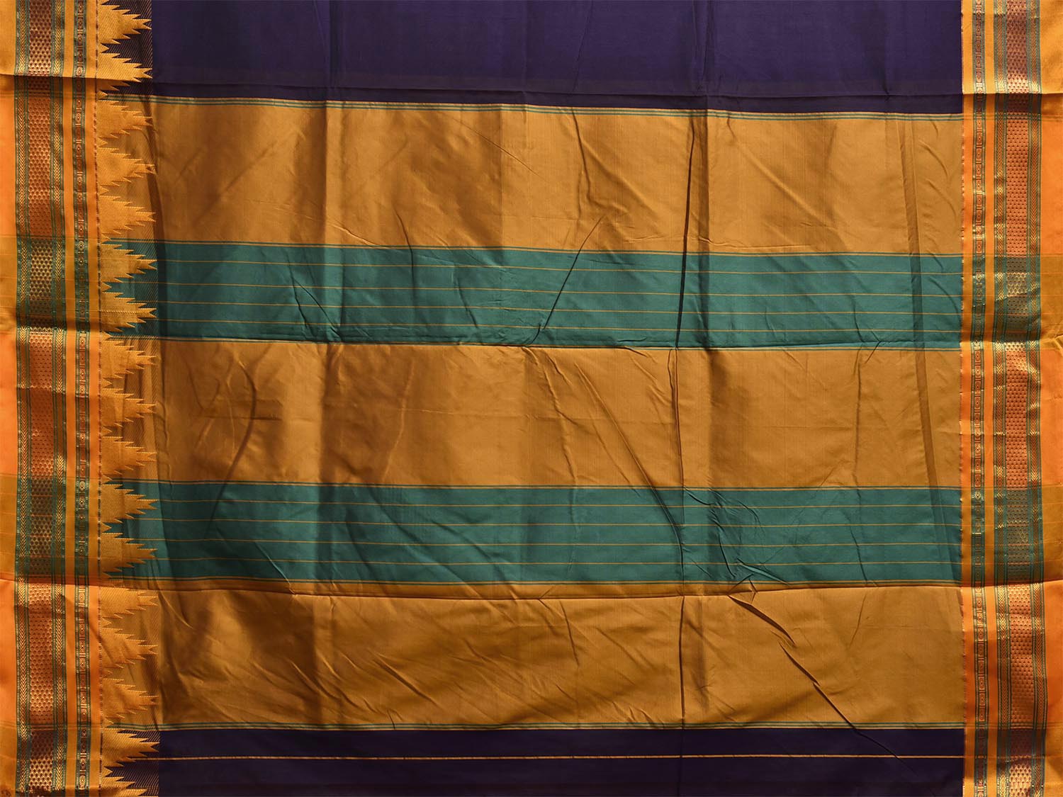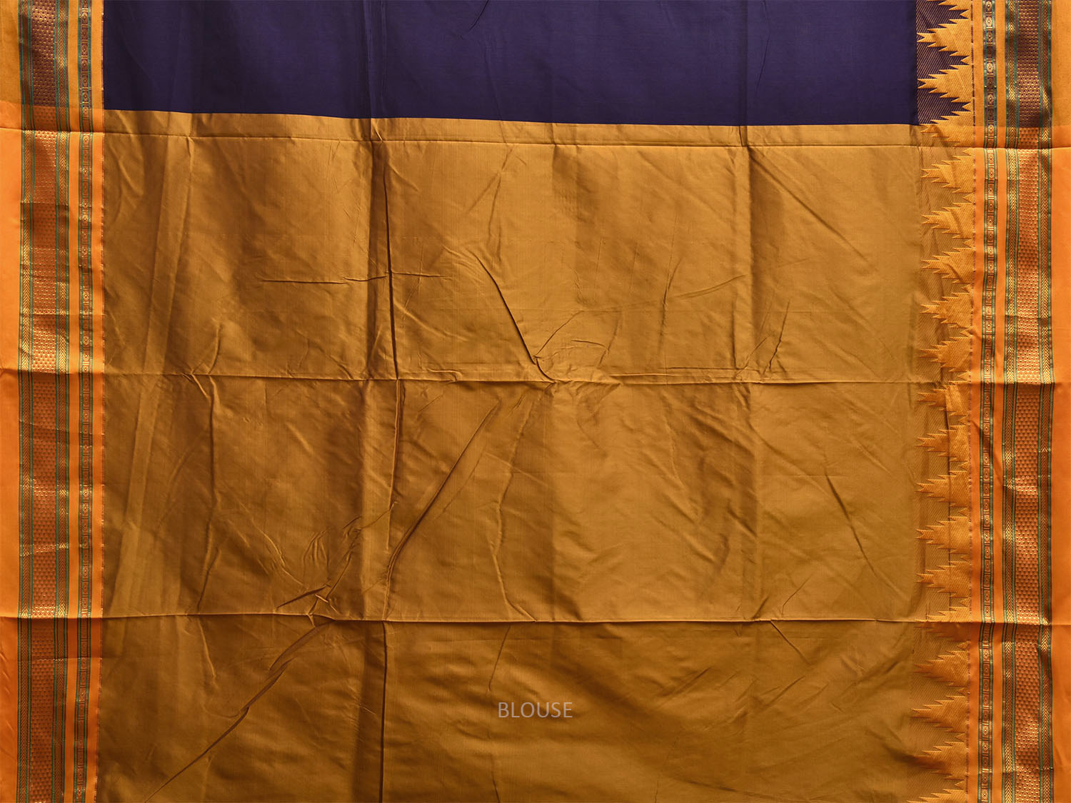 Indigo and Yellow ilkal Viscose Plain Saree with Contrast Pallu and Temple Border Design. For fabric care we advise gentle handwash separately.