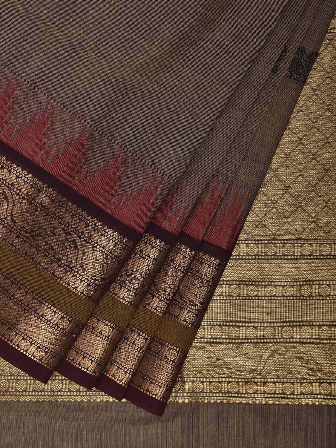 Khaki Kanchipuram Cotton Saree with Buta and Temple Border Design k0953