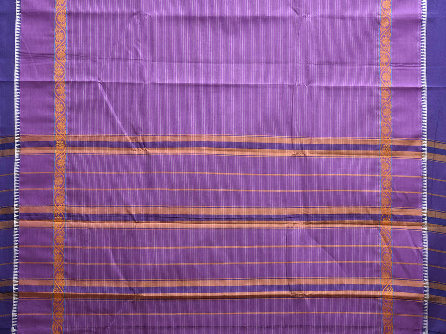 Lavender and Blue Narayanpet Cotton Handloom Saree with Big Border Design No Blouse