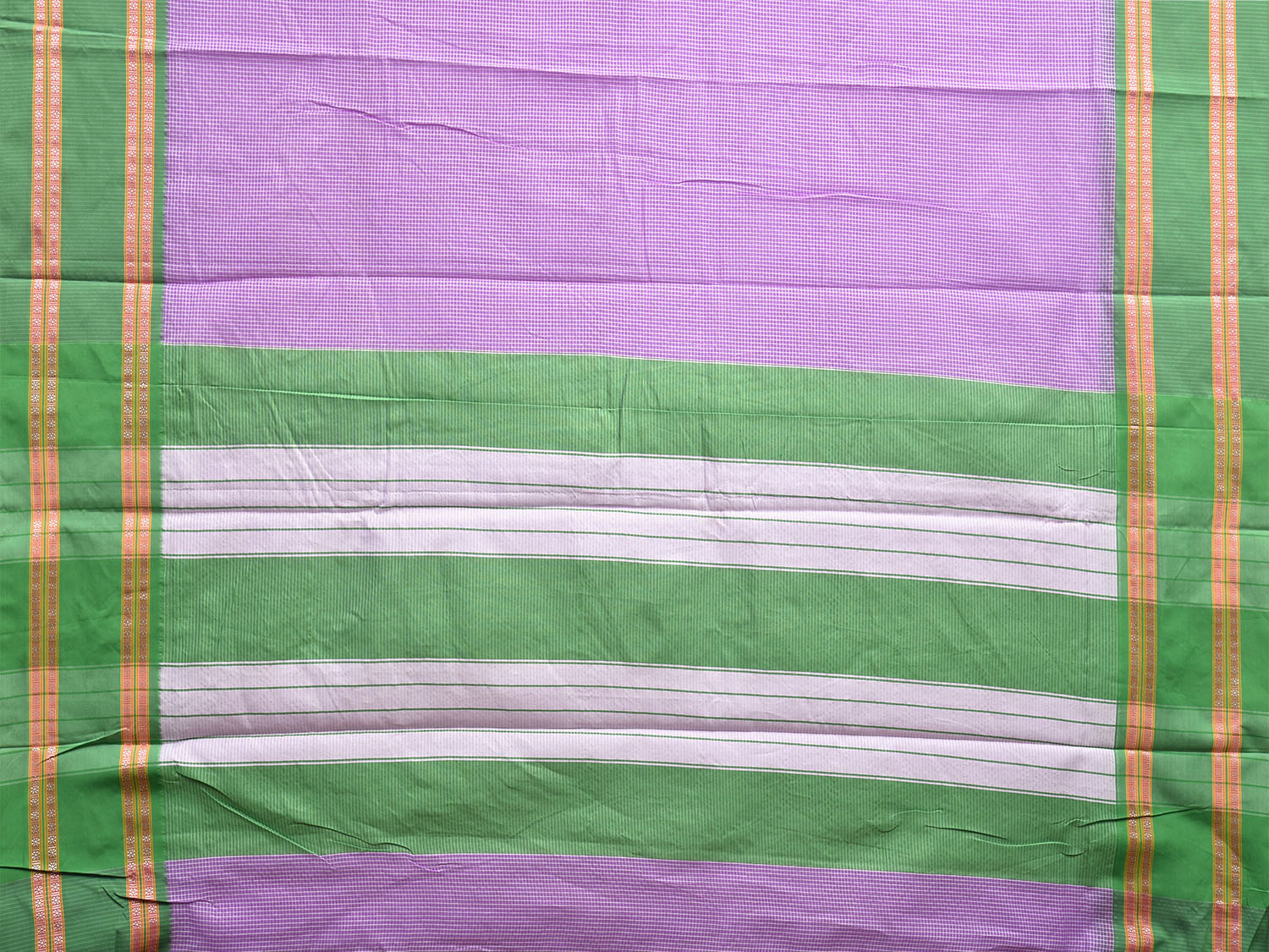 Lavender and Green Bamboo Cotton Saree with Small Checks Design No Blouse bc0493