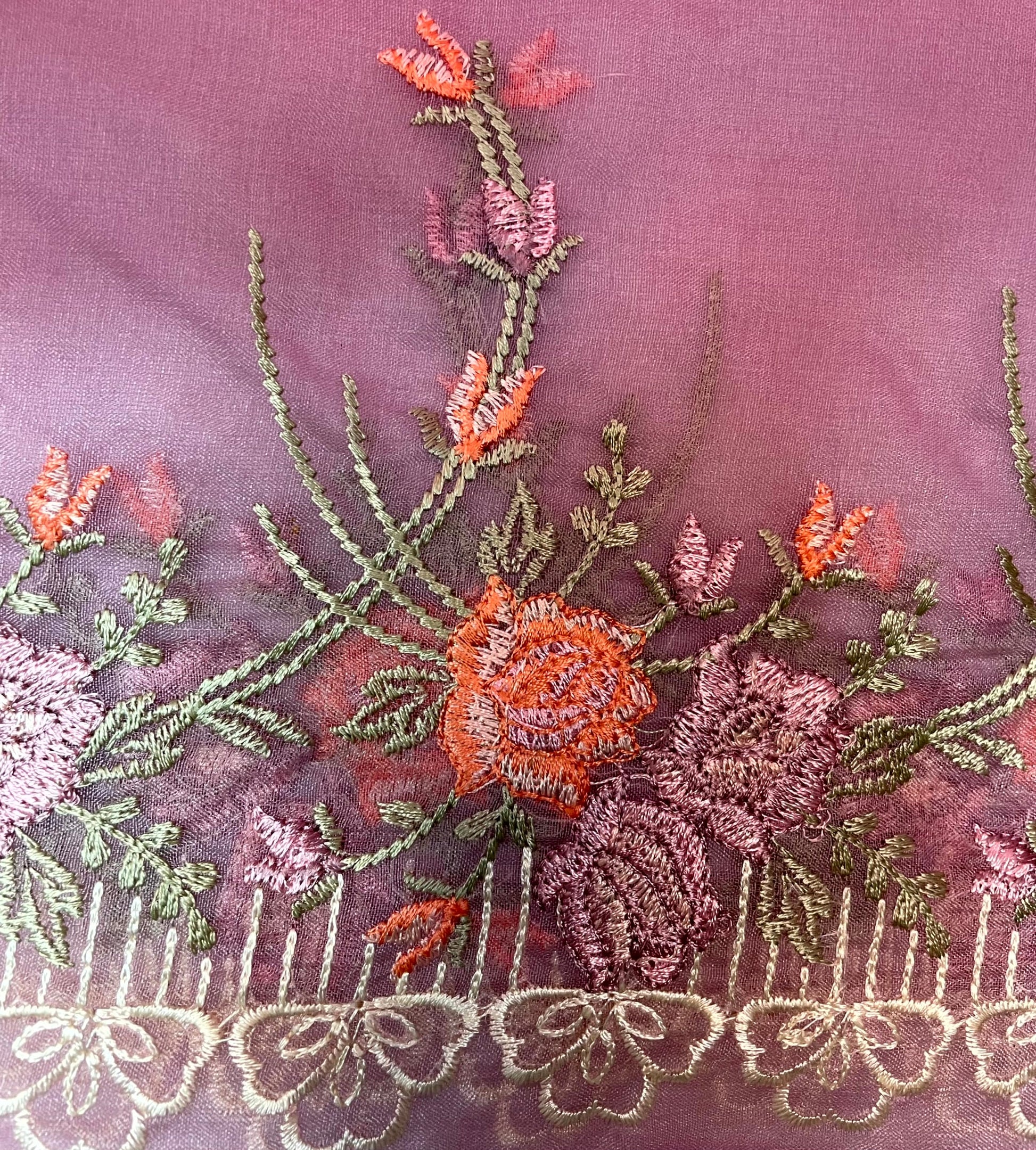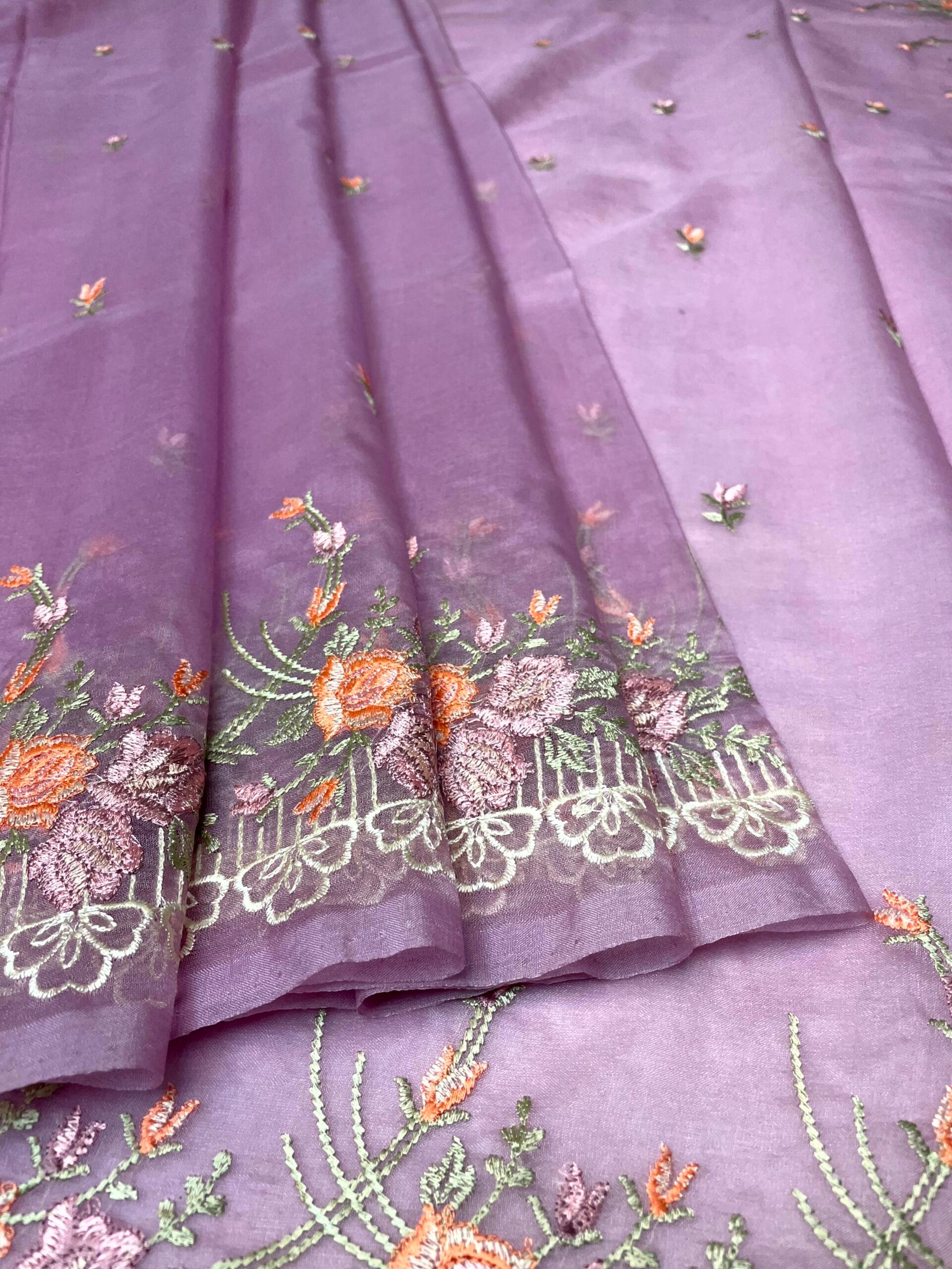 Lavender Organza Saree Embroidery with Butta and Border Design