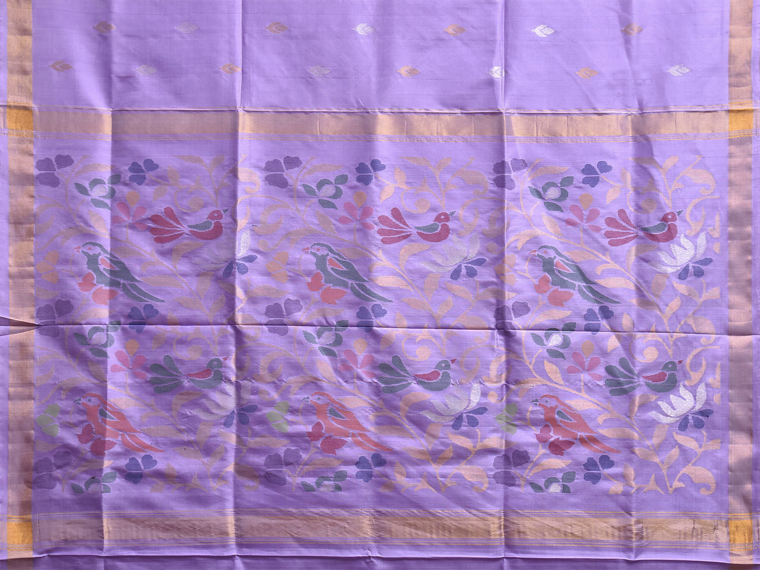 Lavender Uppada Silk Handloom Saree with Birds and Floral Design u2493