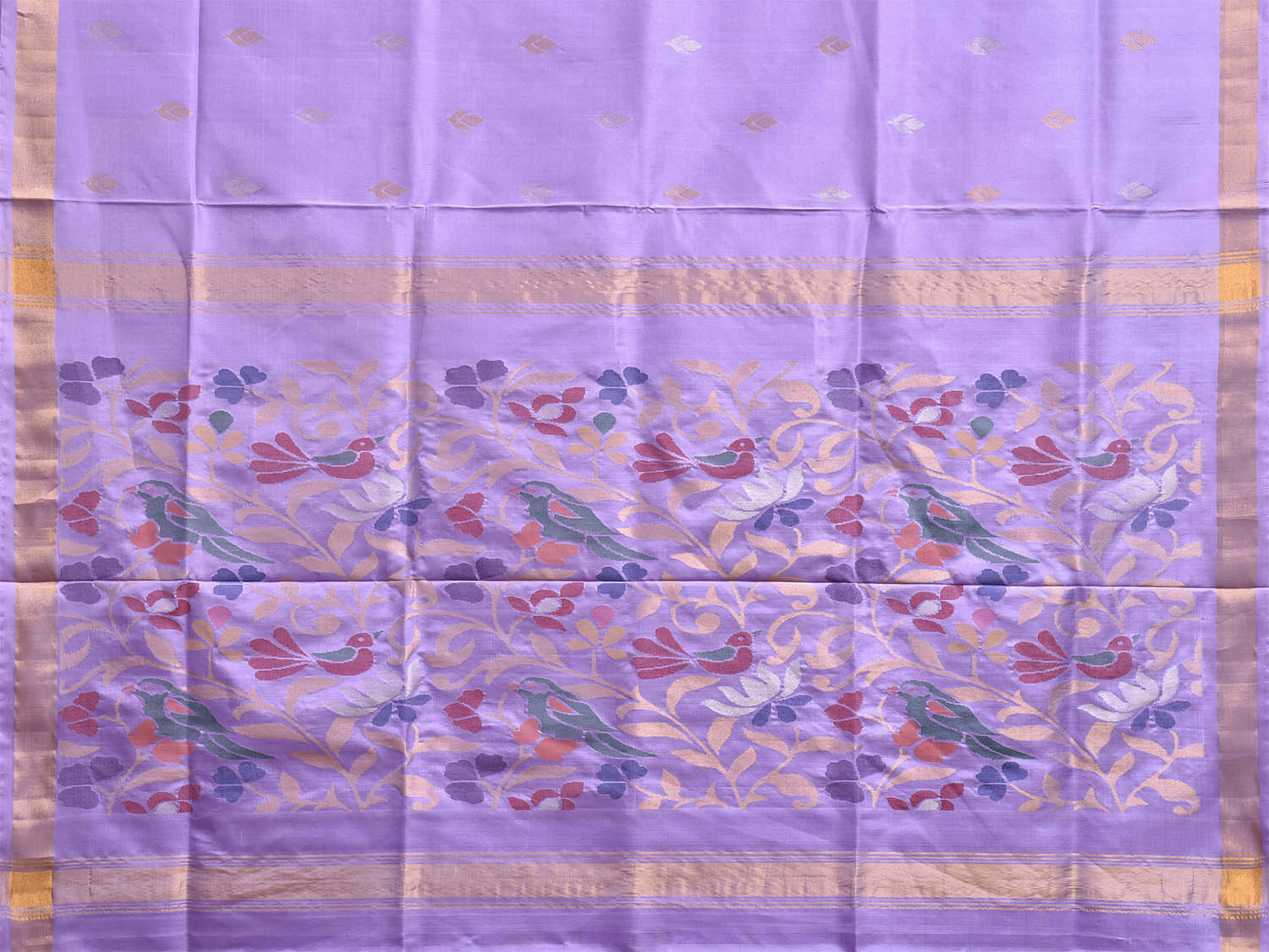 Lavender Uppada Silk Handloom Saree with Floral and Birds Design u2509