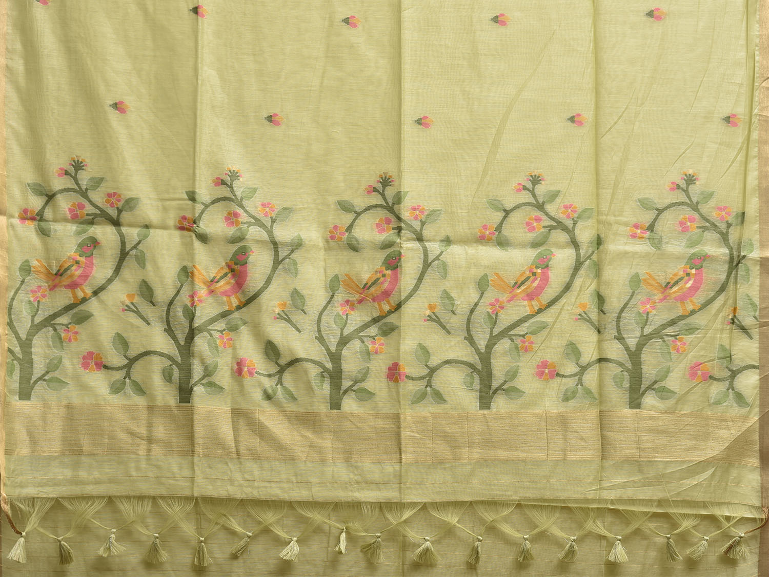 Lemon Green Dhakai Jamdani Cotton Viscose Saree with Floral Buta Design dj0163