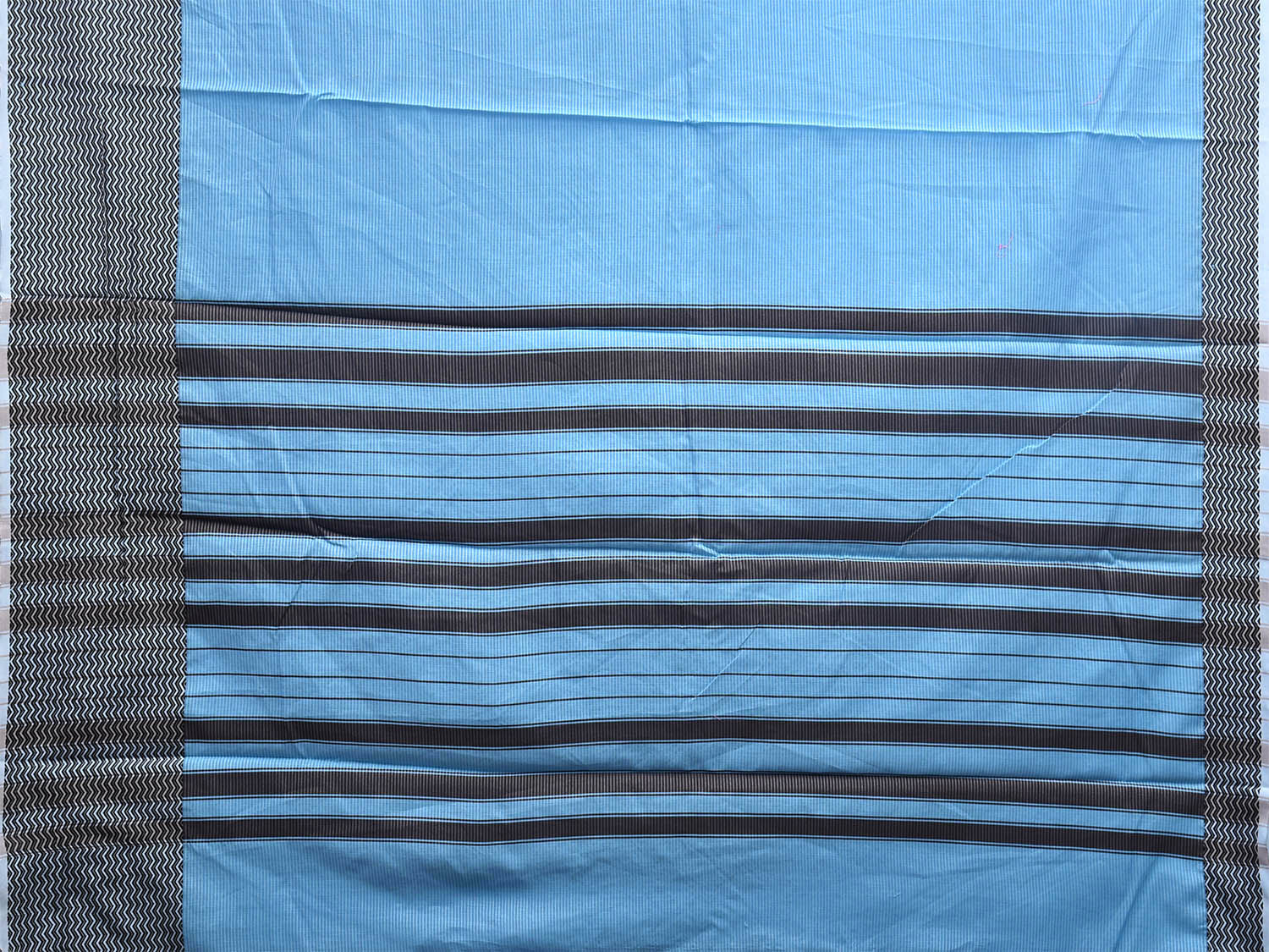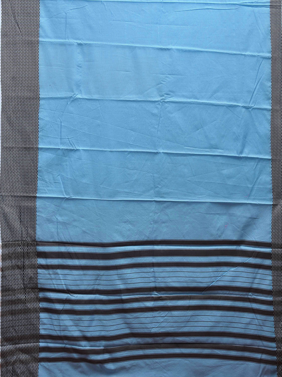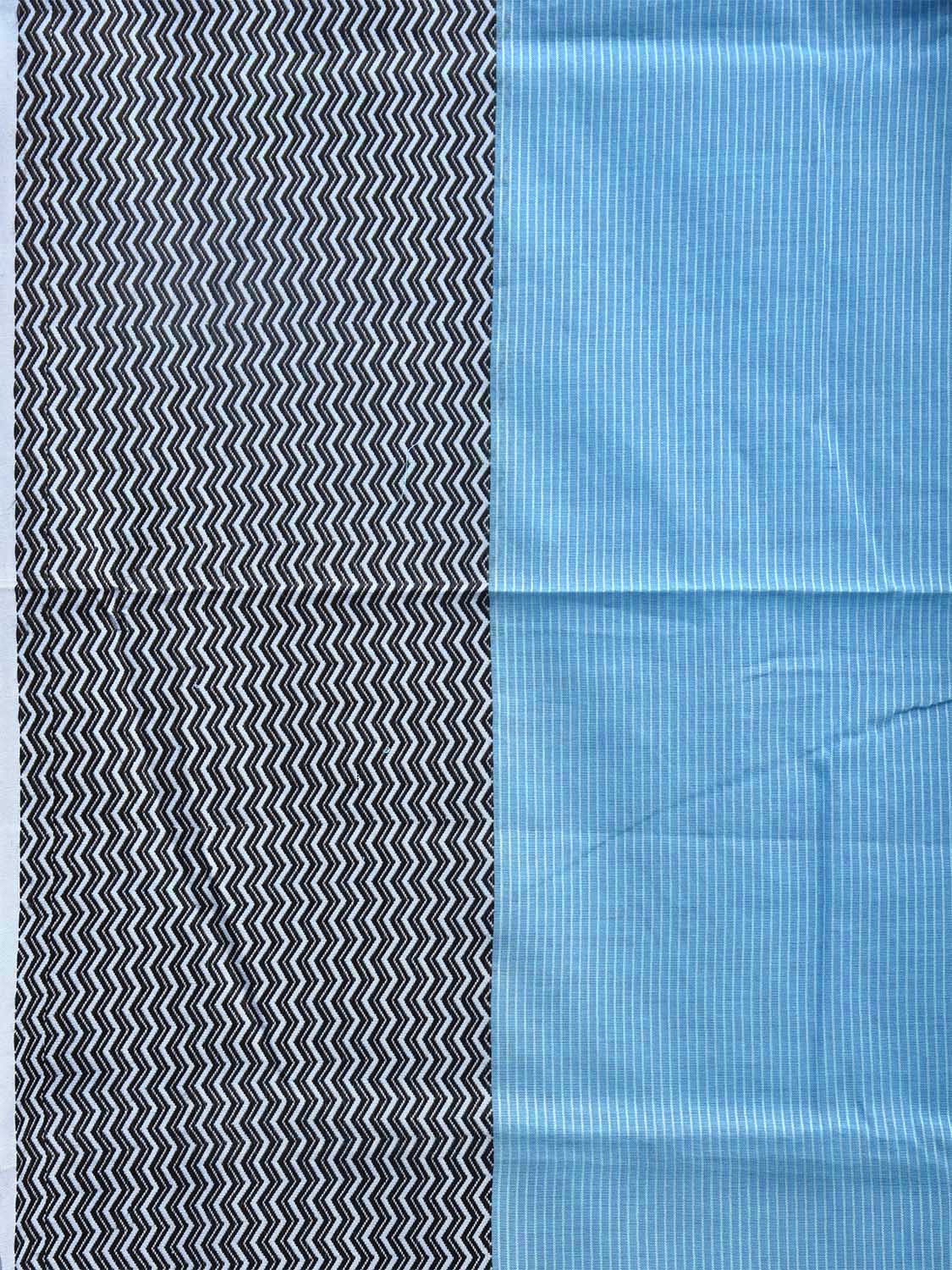 Light Blue and Black Bamboo Cotton Saree with Strips and Zig-Zag Border Design No Blouse bc0509