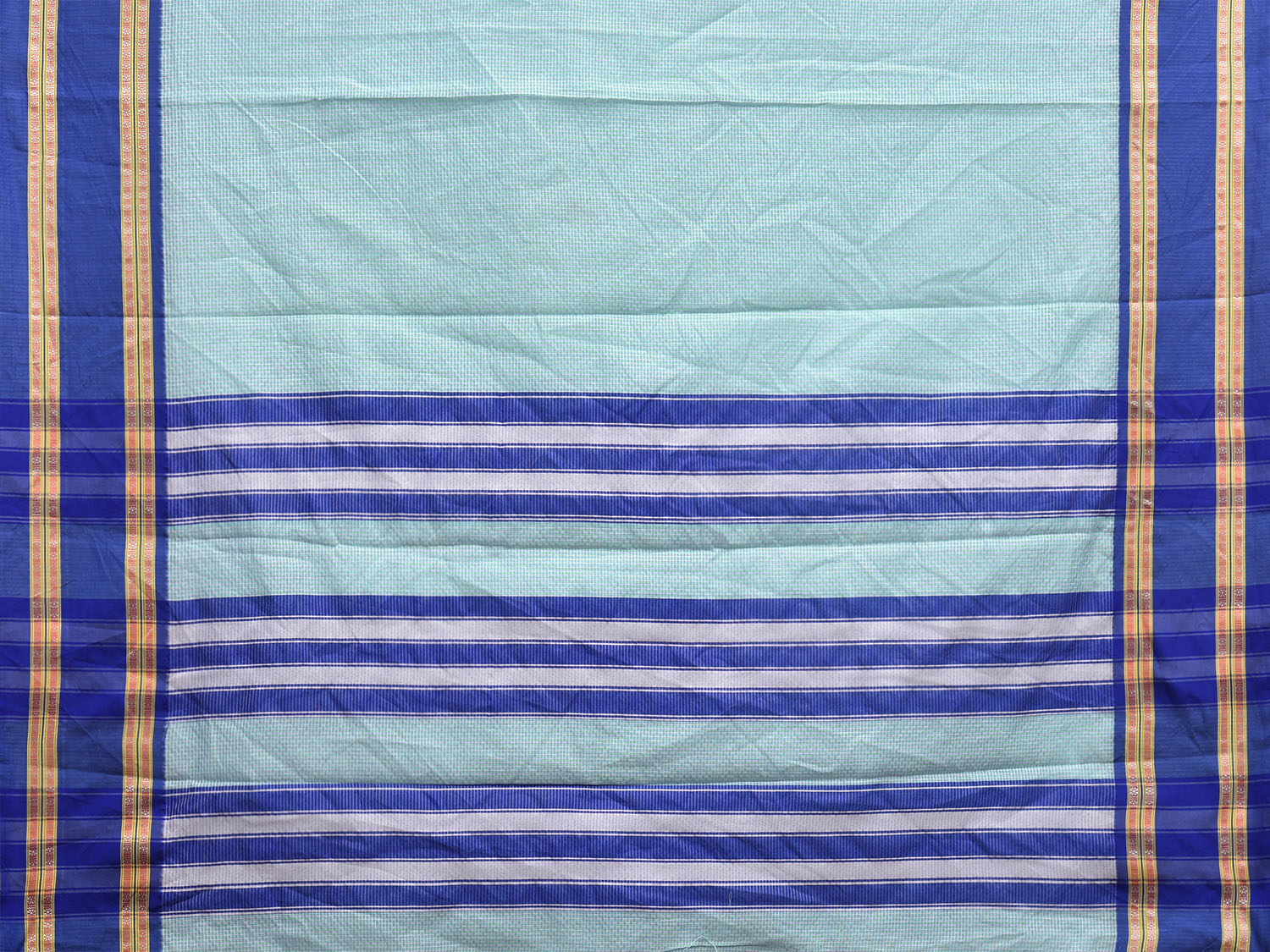 Light Blue and Blue Bamboo Cotton Saree with Small Checks Design No Blouse bc0693