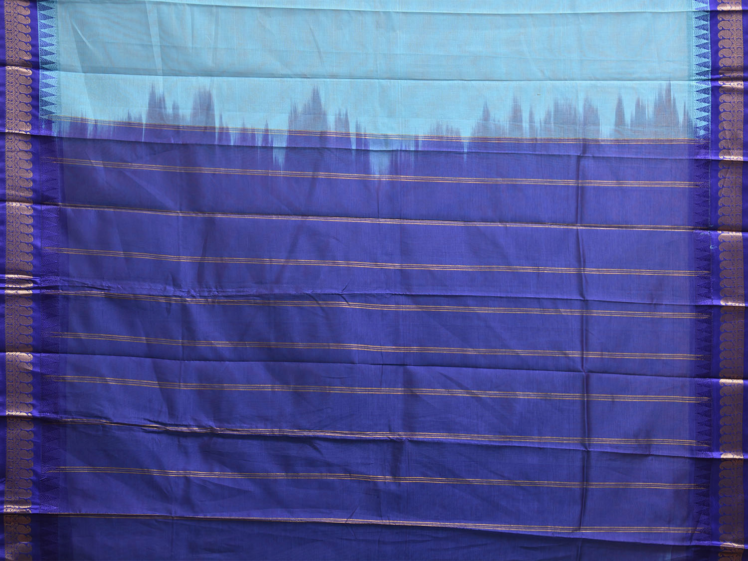 Light Blue and Blue Gadwal Cotton Viscose Plain Saree with Contrast Pallu Design No Blouse g0516